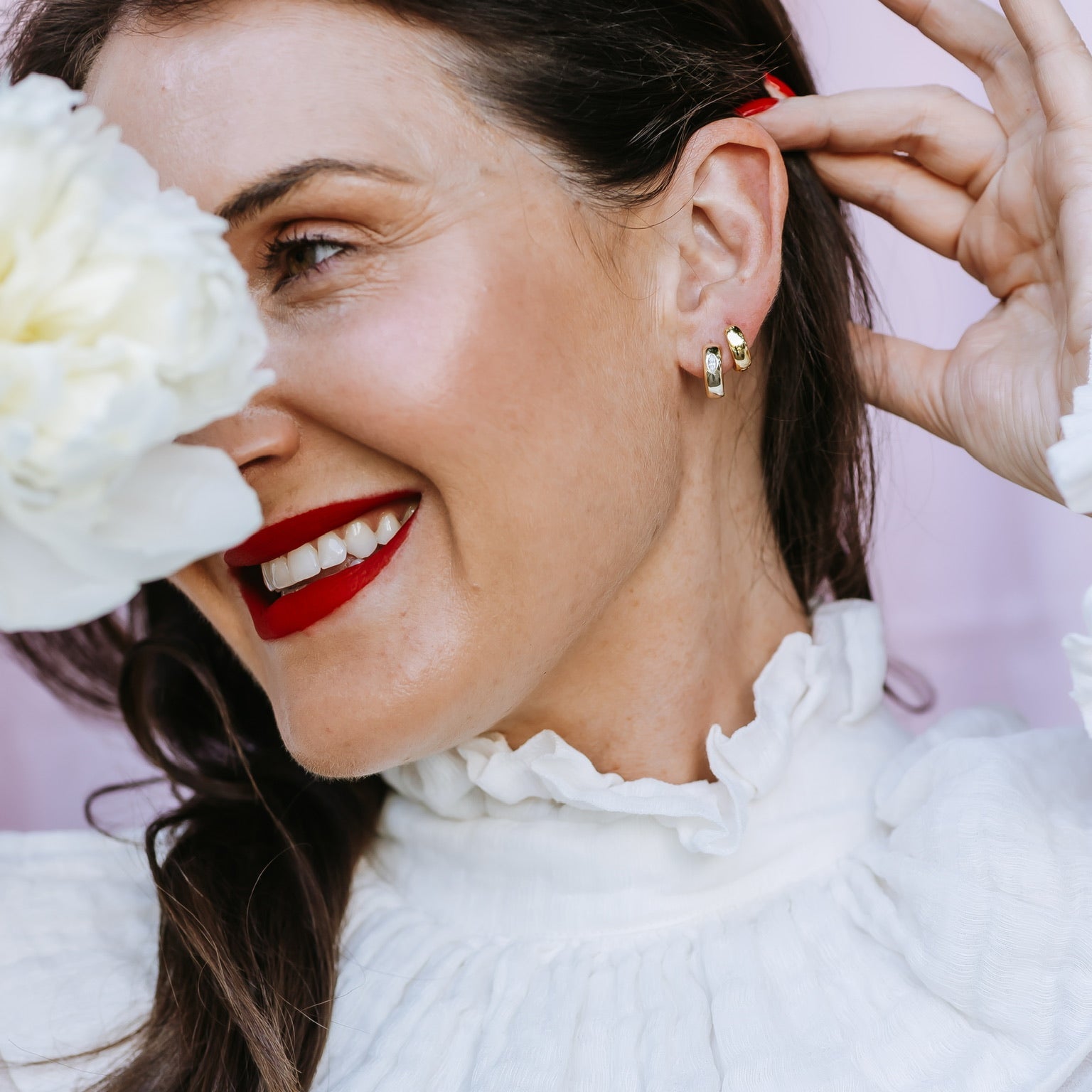 Each box includes two pairs of gold hoops, perfectly paired to be stacked together for an elegant yet bold everyday look — the ultimate mix of bold, minimal, sparkly, and chic.
