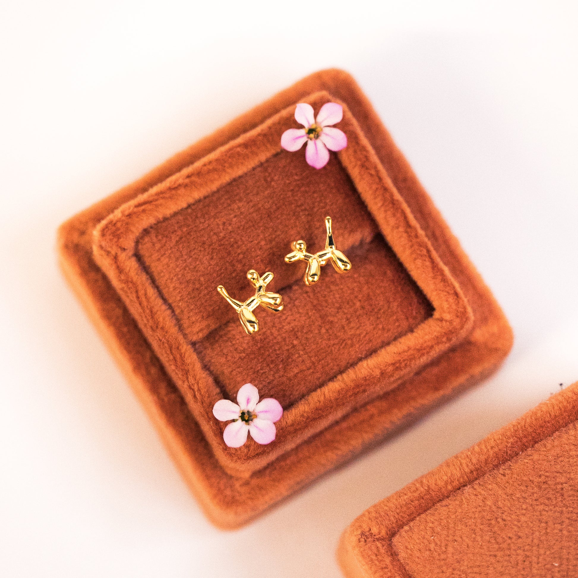 The Balloon Dog studs are paired here with the elegant Garter Hoops in burnt orange.