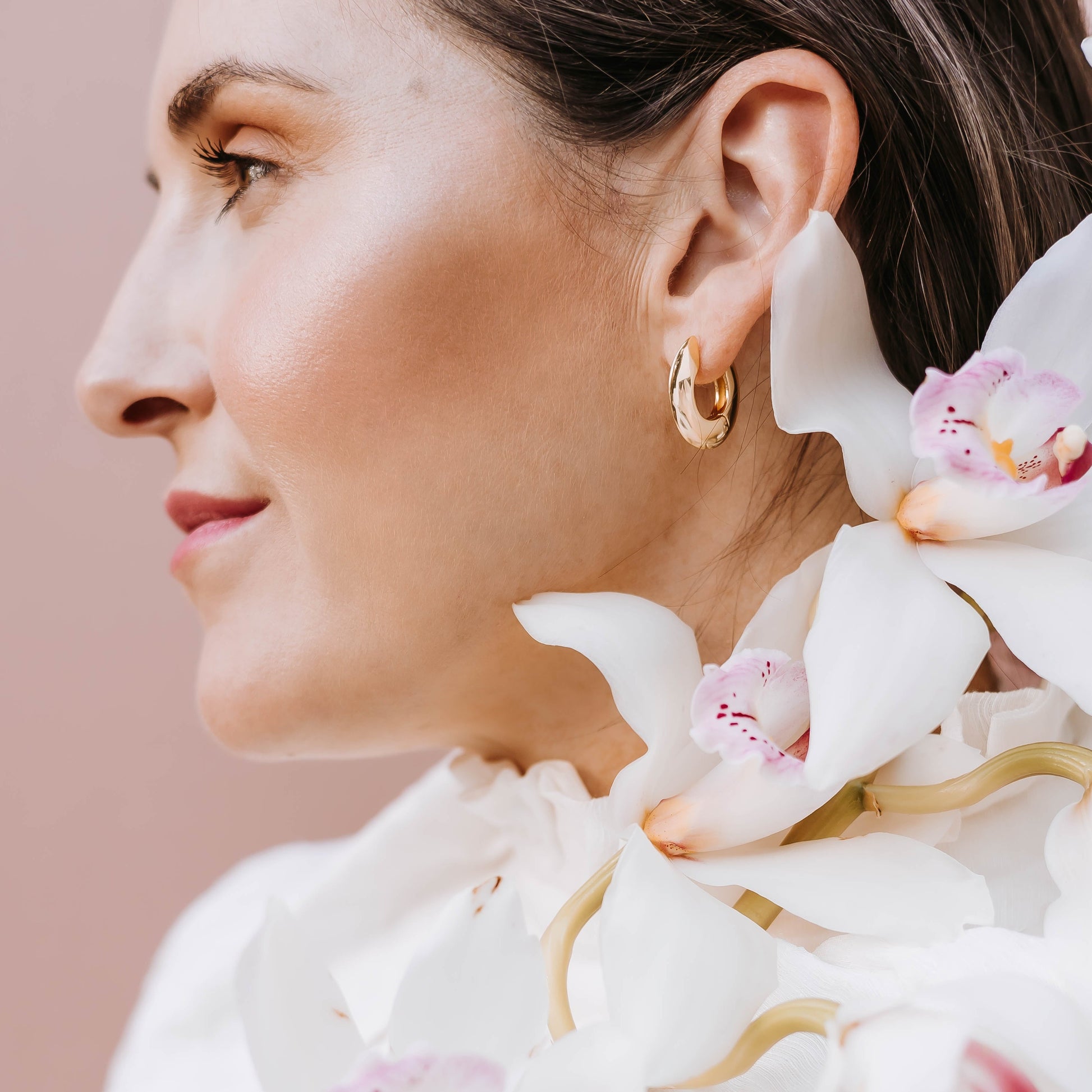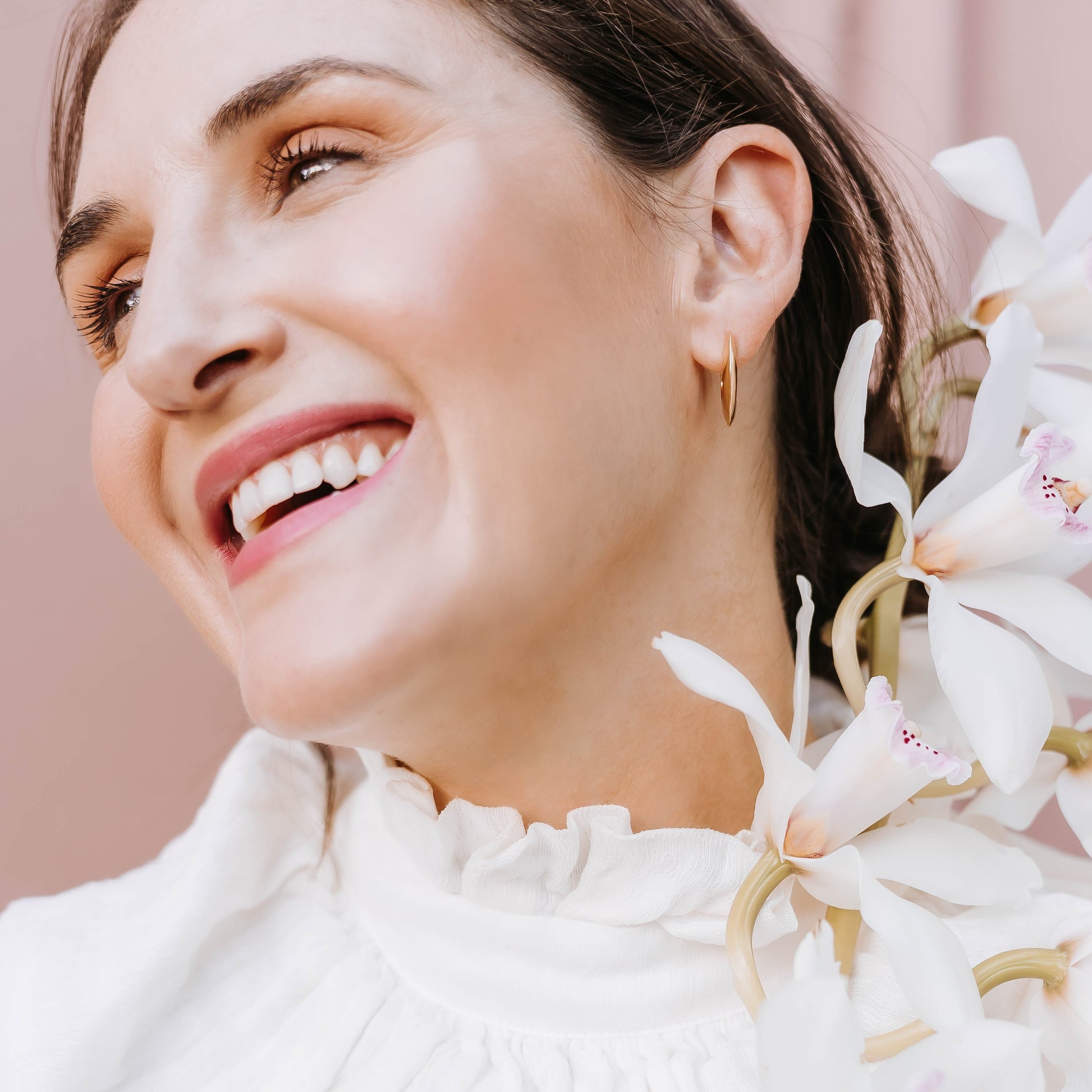 "I love the size of the Blush hoop - a narrow silhouette with a chunkier side profile gives it interest and pure sophistication" Tori of Kiss Blush & Tell