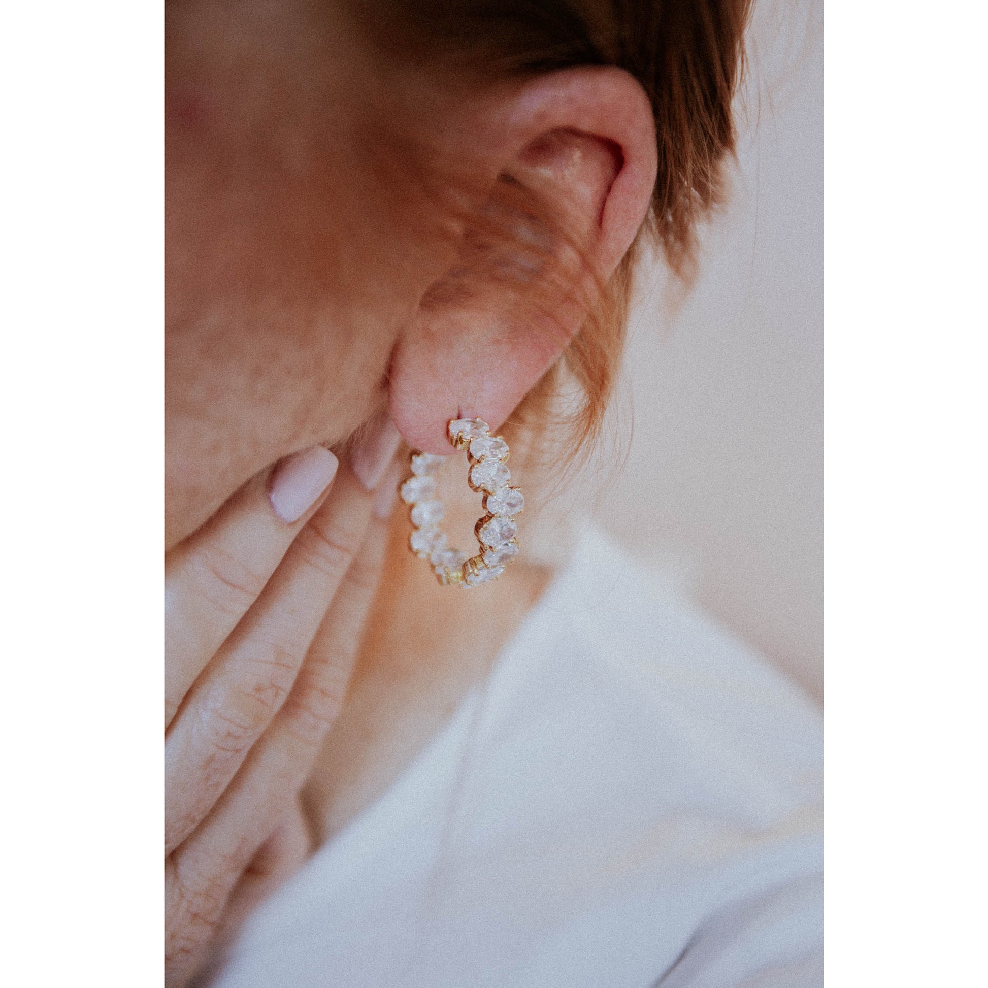 Channeling the bubbly spirit of champagne, the Bubbles Hoops were designed to elevate your sparkle. They complement any special occasion look, adding a touch of enchantment to your ensemble.