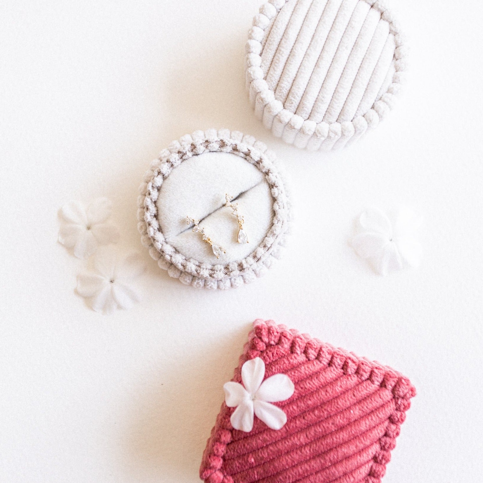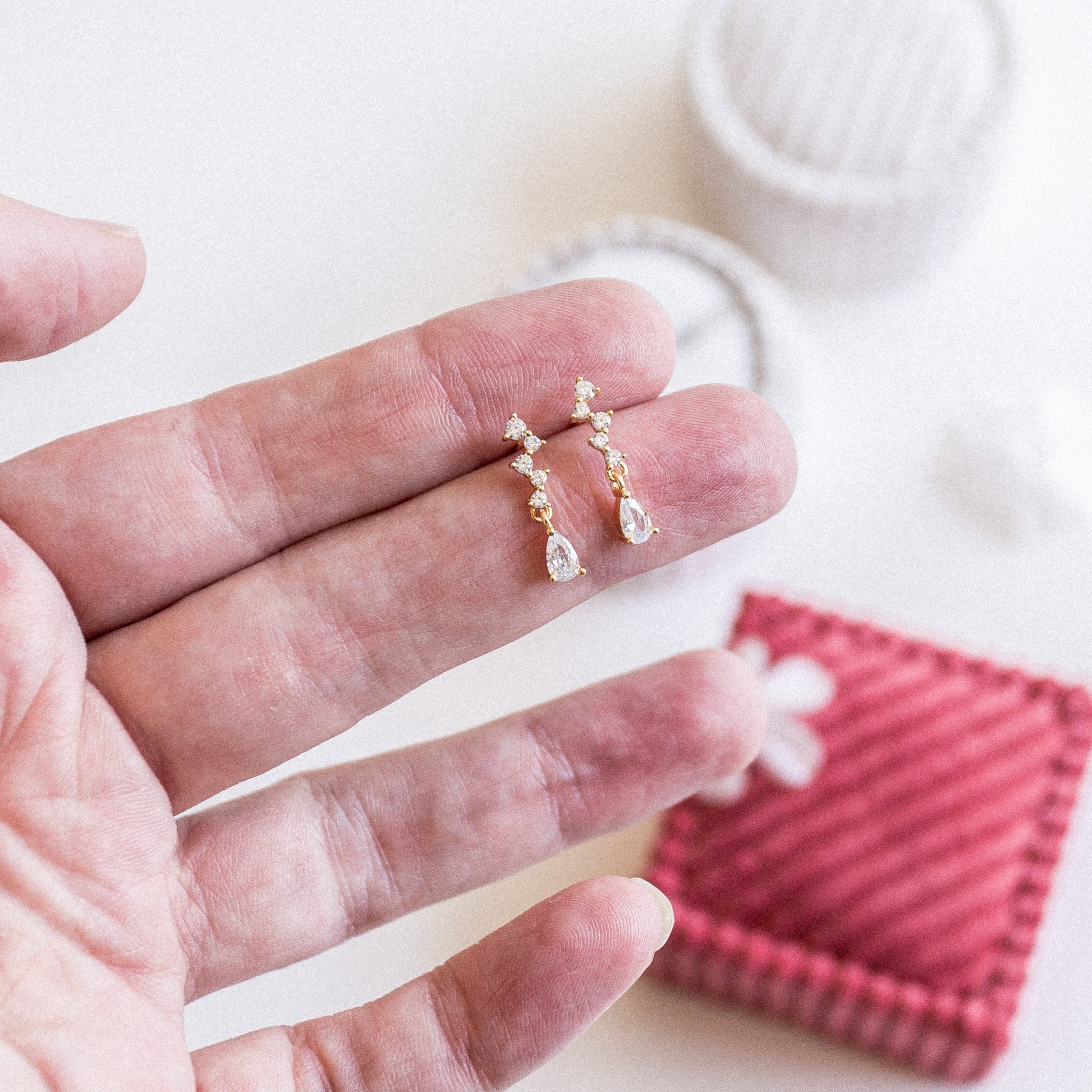 The Lain Stud Drops are pictured here with The Opal Moondrop Studs & The Fairy Studs.