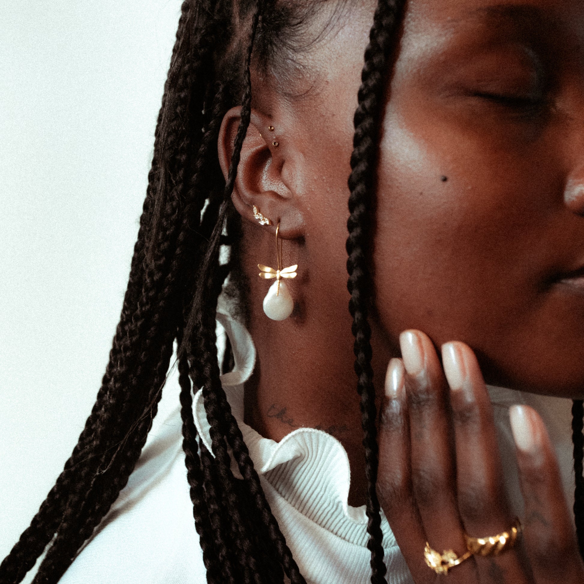 Pictured with the Emperor Pearls — ear-stacking perfection.