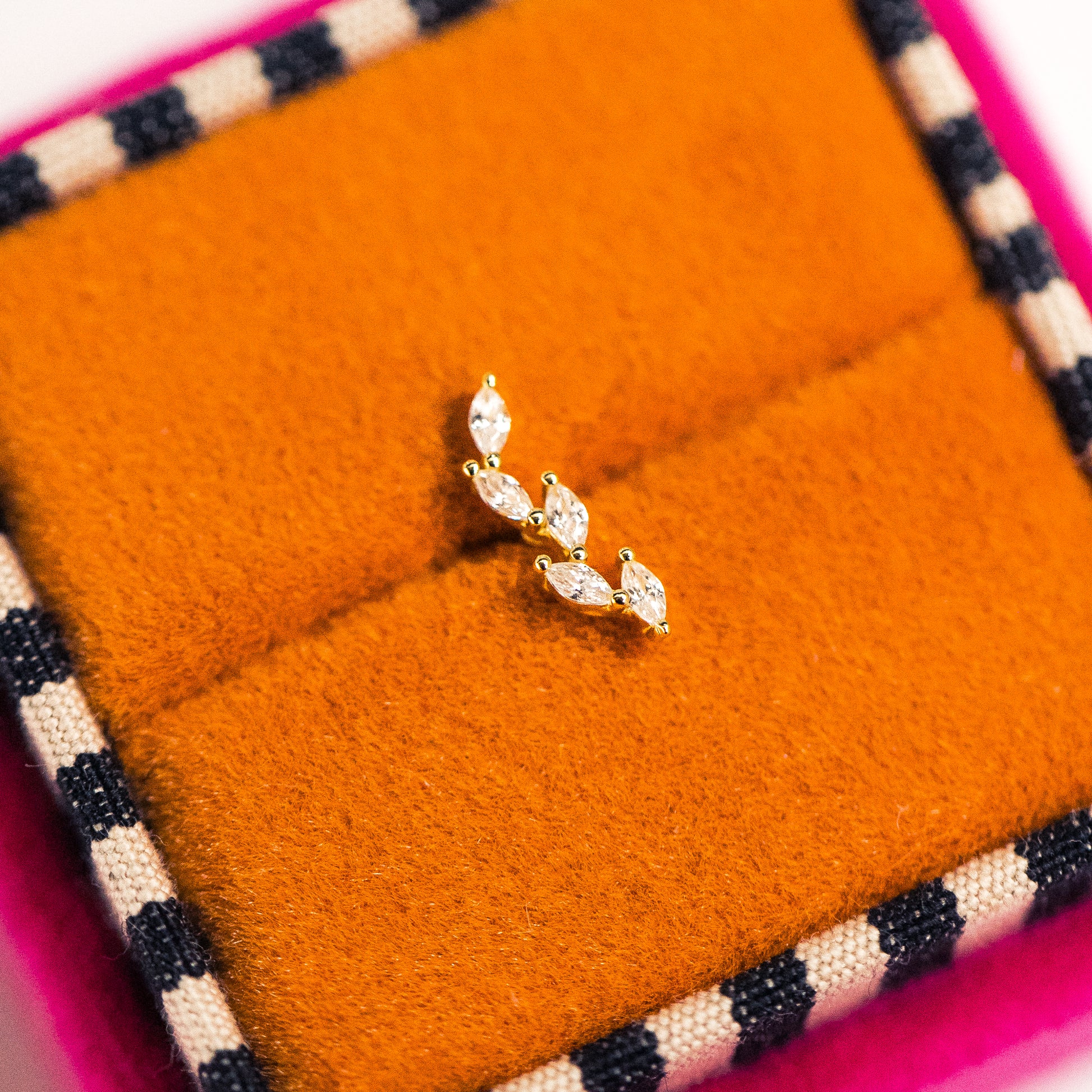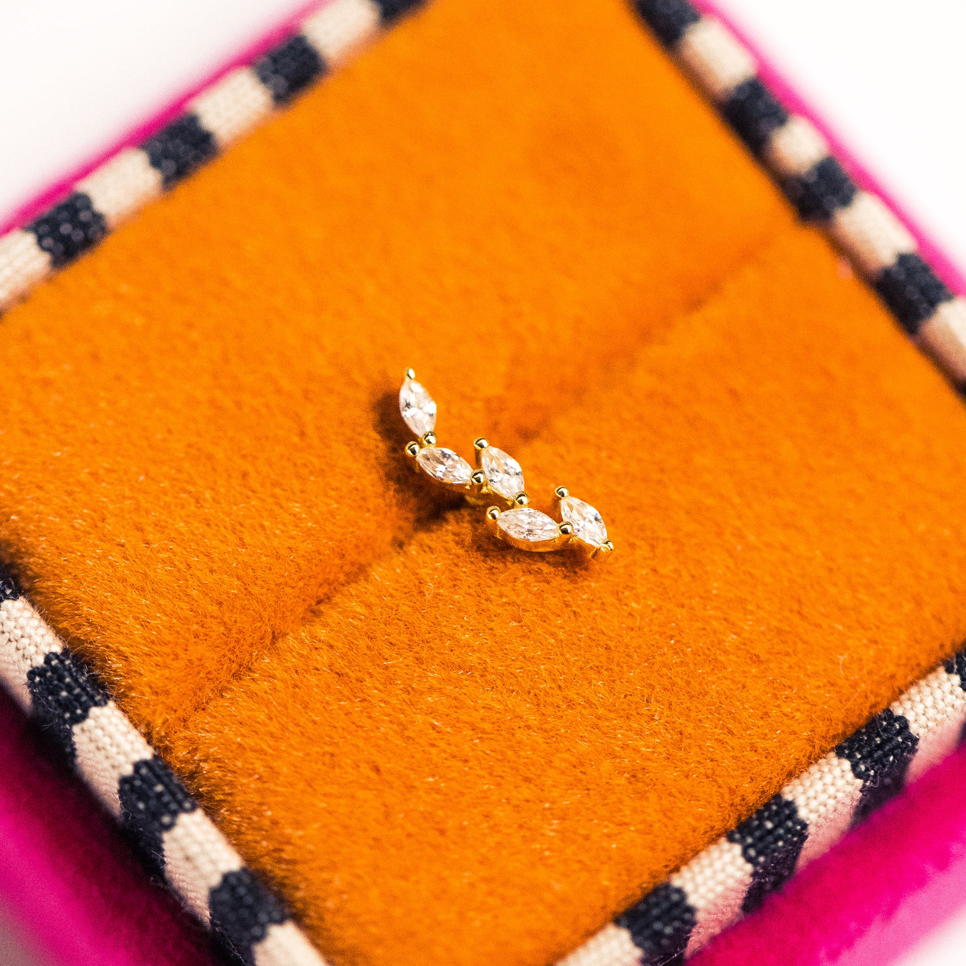 A dainty little vine that’s crept straight into our hearts — and onto our lobes. Delicately sparkly, wonderfully subtle, and oh-so-comfortable, she’s the kind of stud you’ll forget you’re wearing (until someone compliments her… again).
