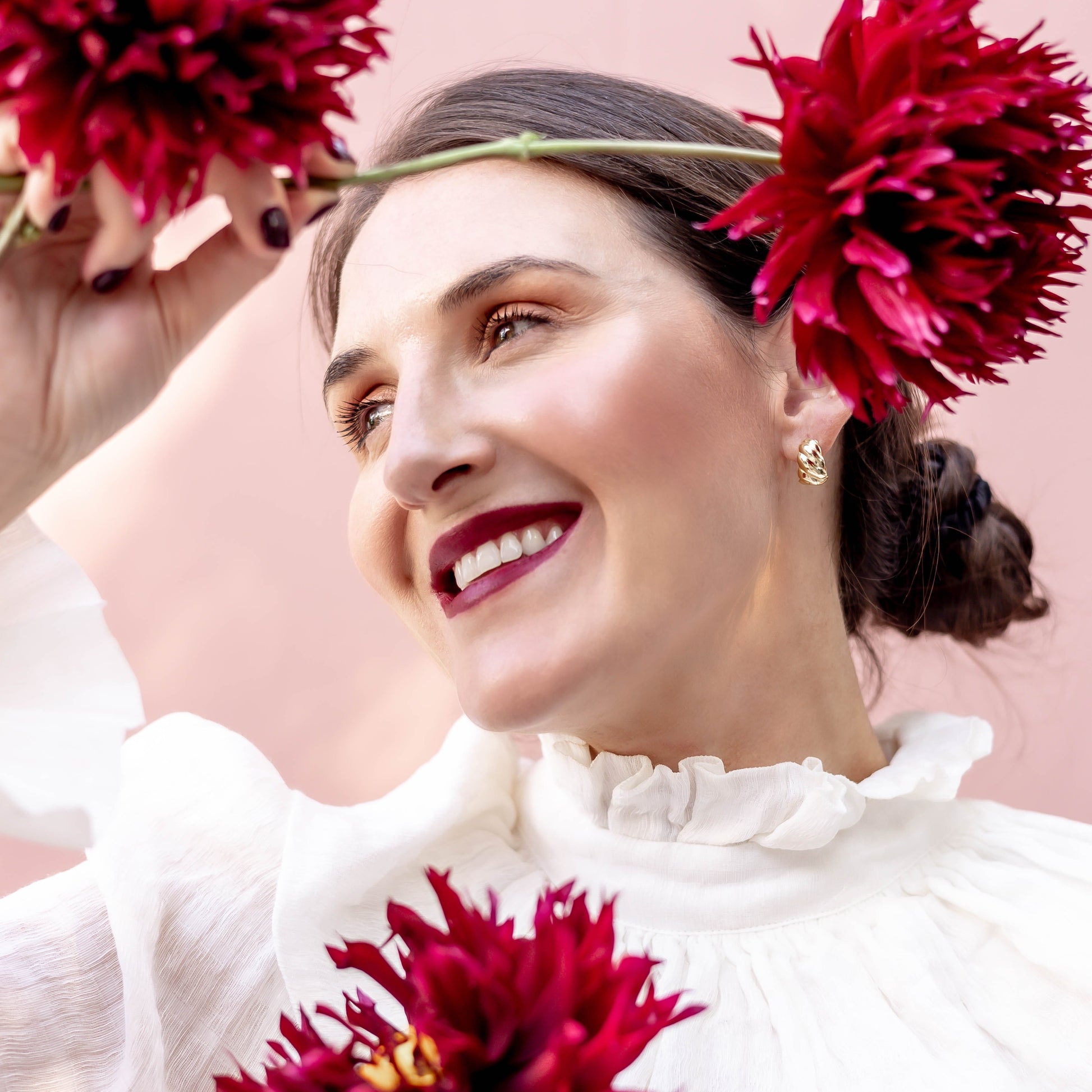 "One of my favorite pairs, the perfect modern twist to a 90's classic croissant hoop" Tori of Kiss Blush & Tell