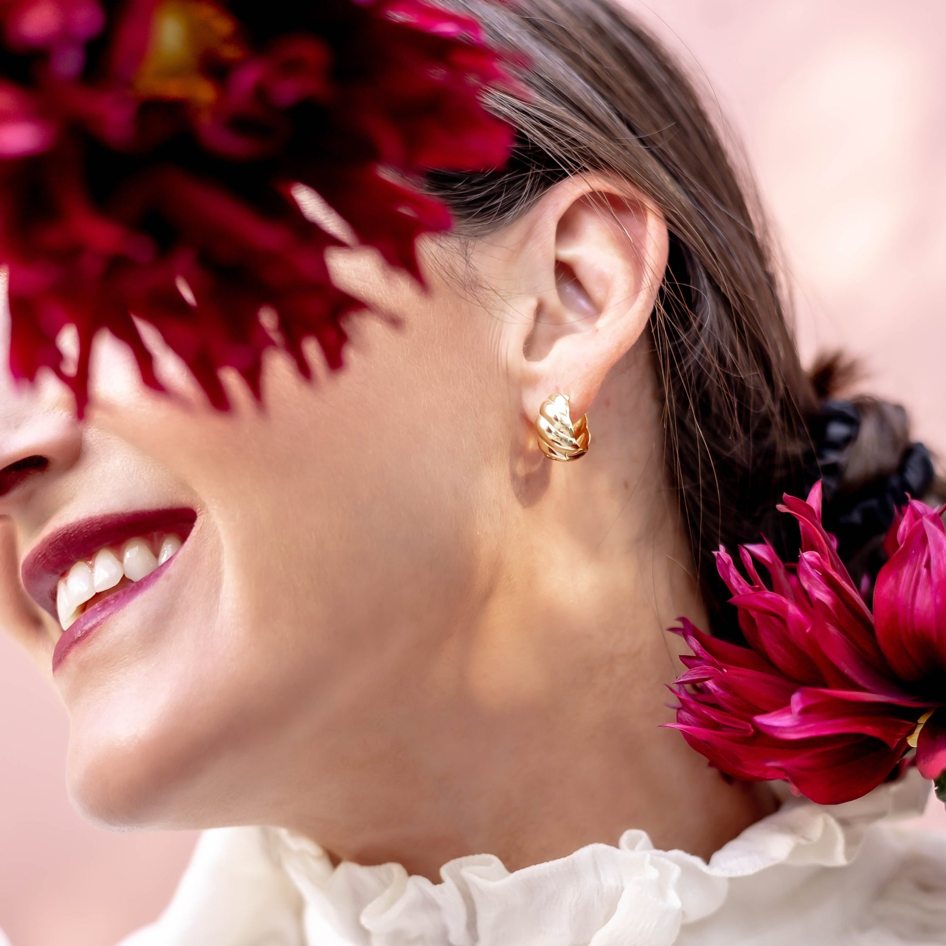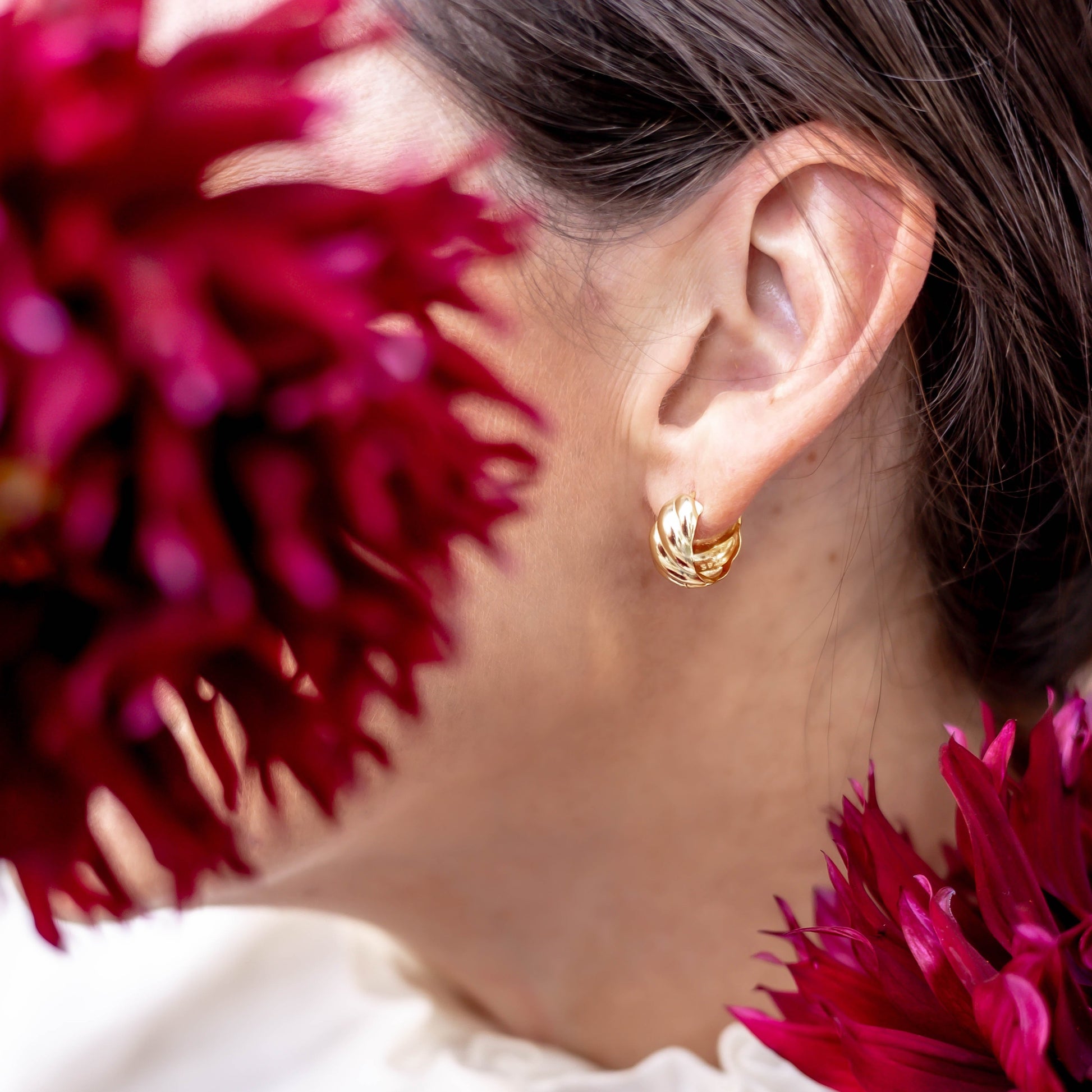 The Croissant Hoops are as sophisticated as they come. The perfect size for every day but with a twisted pattern to add flare and interest to your look. A true style icon.