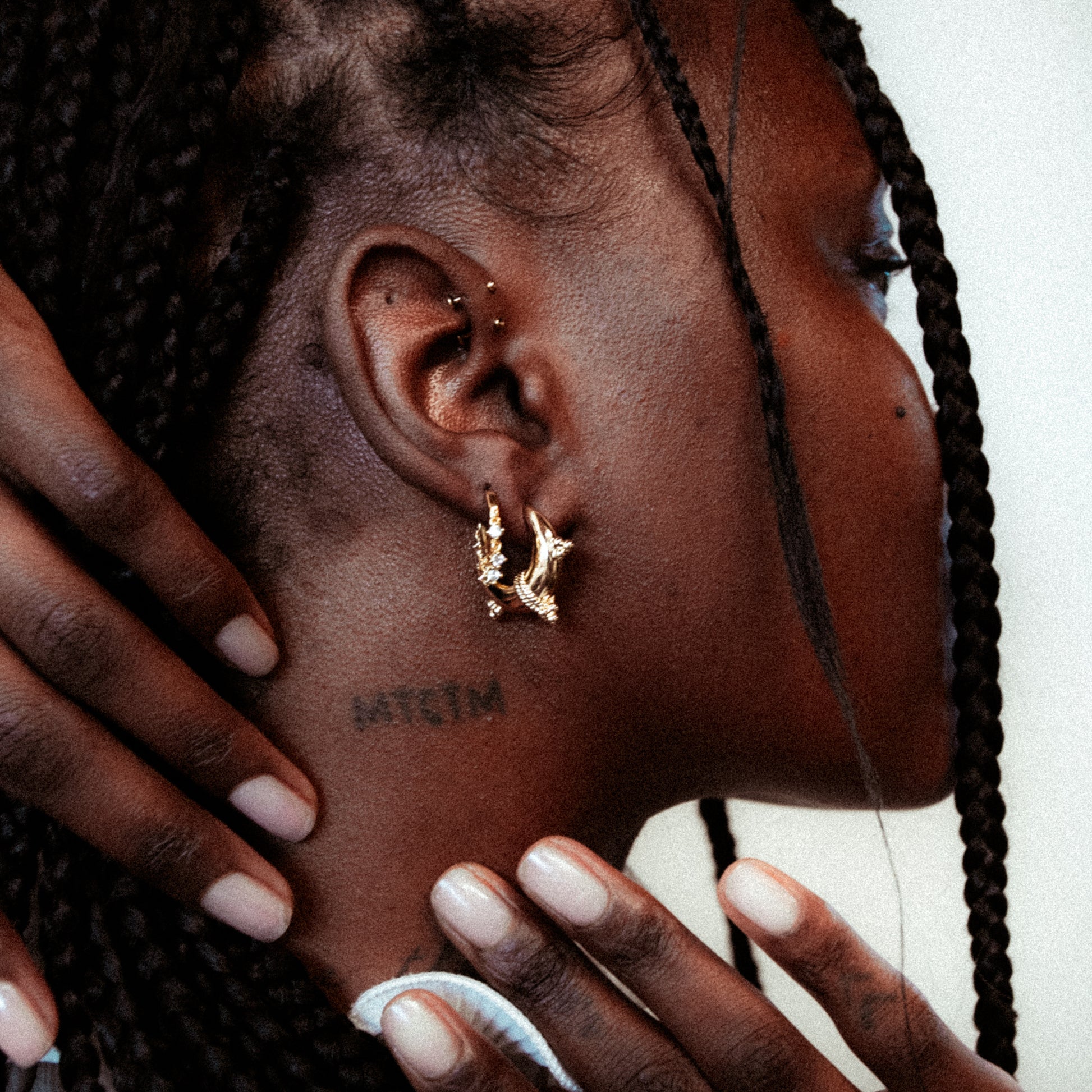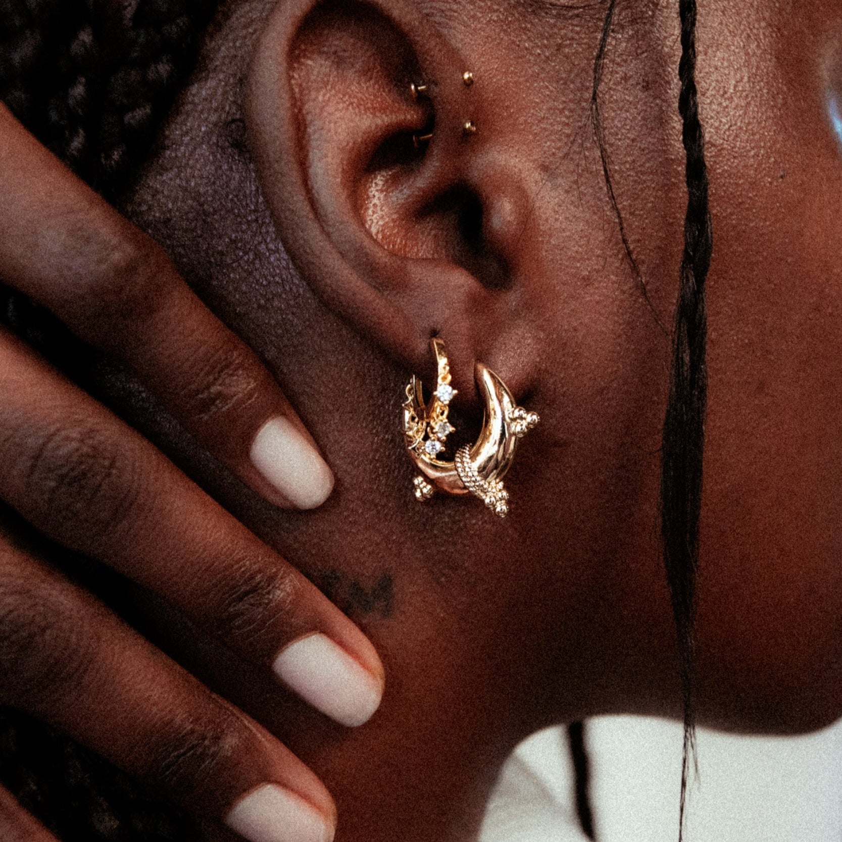 We've paired the Crown Huggies here with the Passage Hoops.