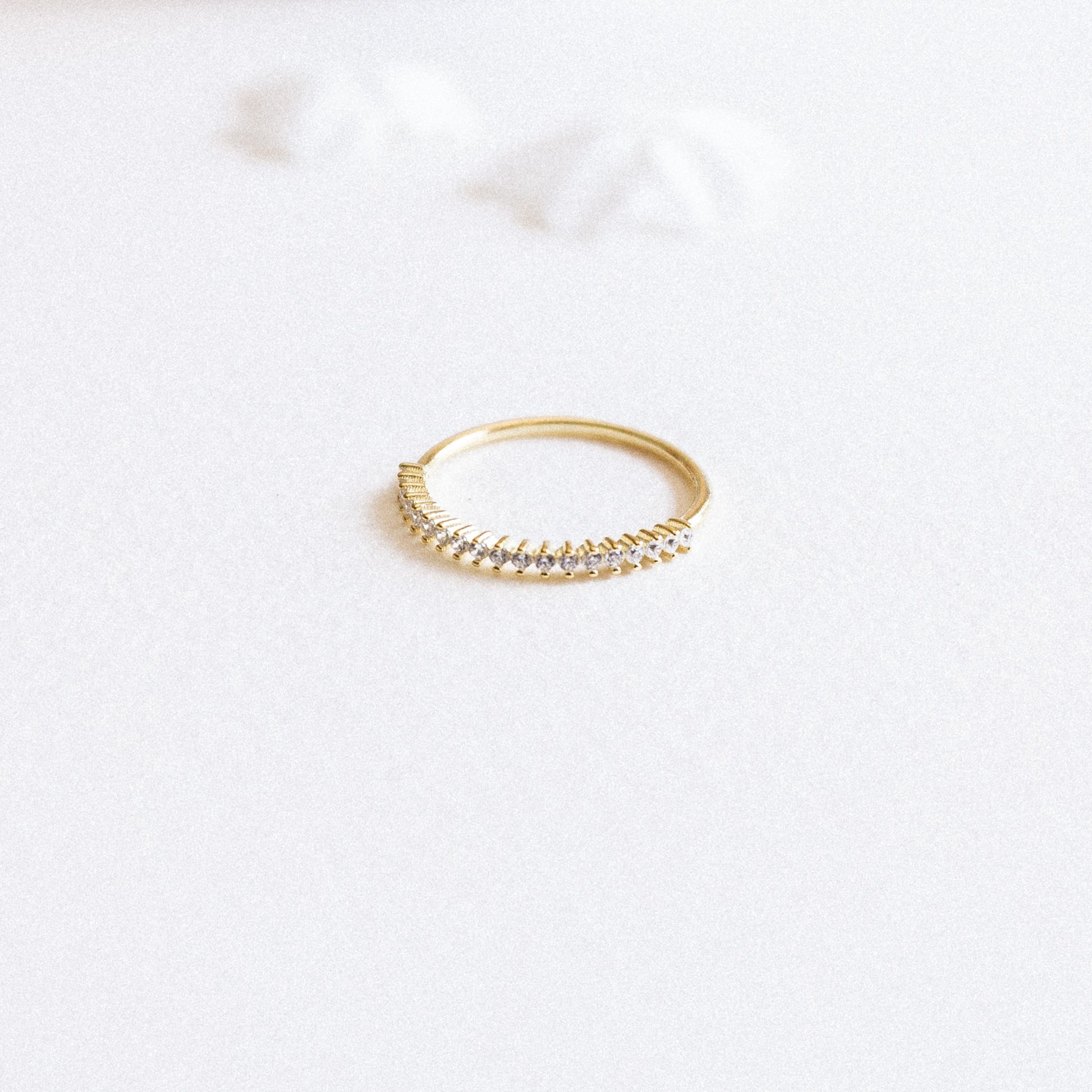 Introducing the Ethereal Ring by Jimnojean. The Ethereal Ring features a delicate band adorned with stunning, sparkling crystals. Its ever-changing allure means you'll never tire of admiring it. Plus, it's perfect for stacking!