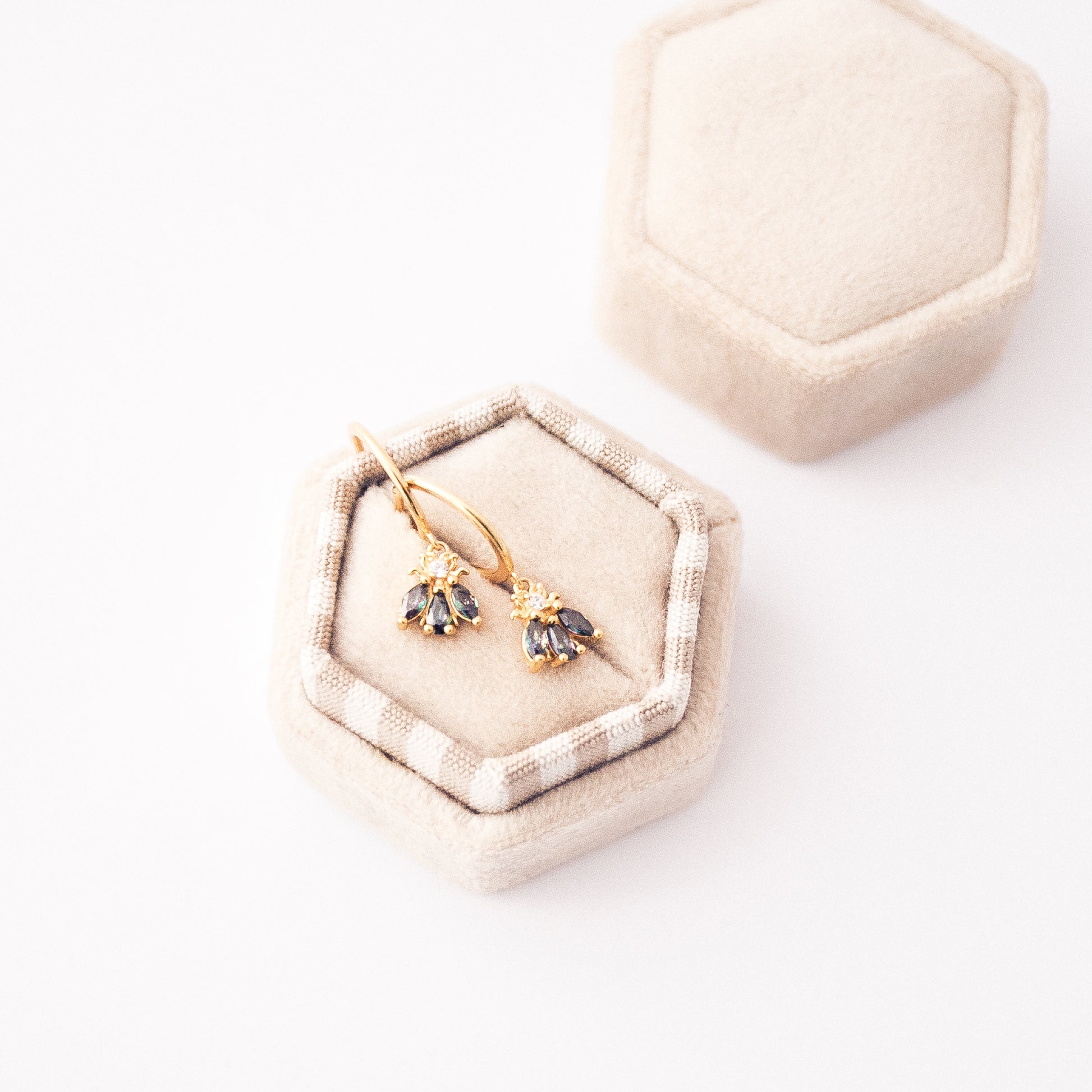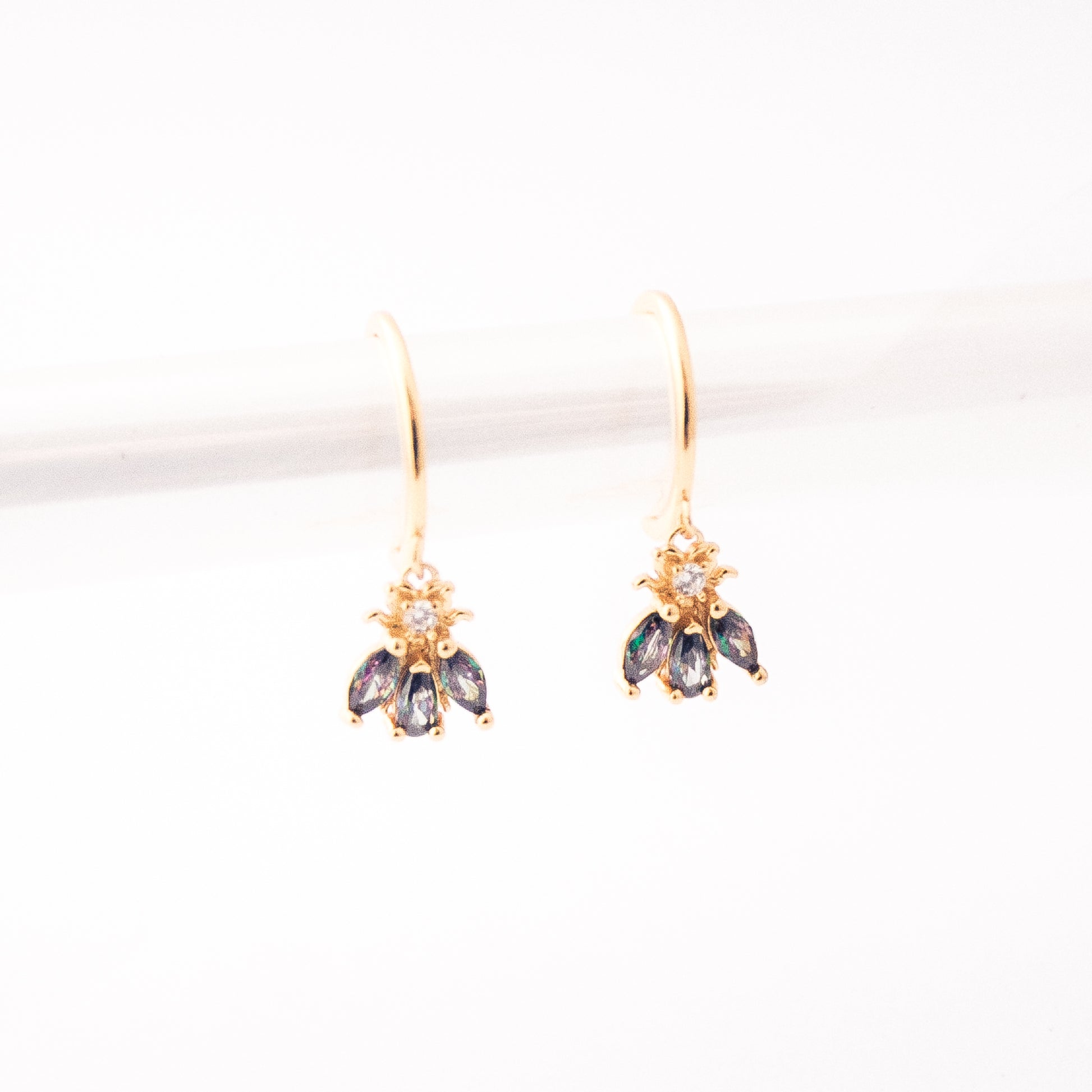 Inspired by the delicate grace of a flying beetle, these beauties shimmer with coloured stones that catch the light in the most enchanting way. Perfect for adding a touch of spring romance to your everyday look.
