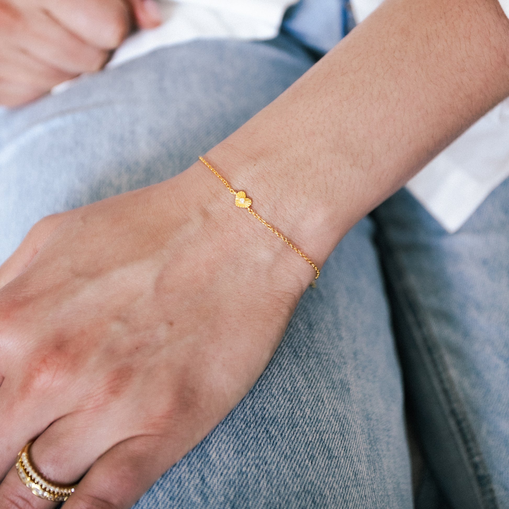 The Heartfelt Bracelet, by Jimnojean, is a beautifully crafted accessory that combines elegance and sentiment. Featuring a delicate chain, the bracelet showcases a charming heart at its center. We just ADORE!