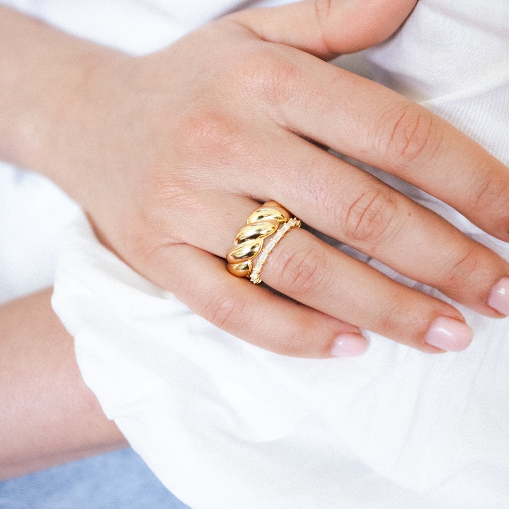 Lisa wears the Heroic Ring paired with the Smoke Show Ring.