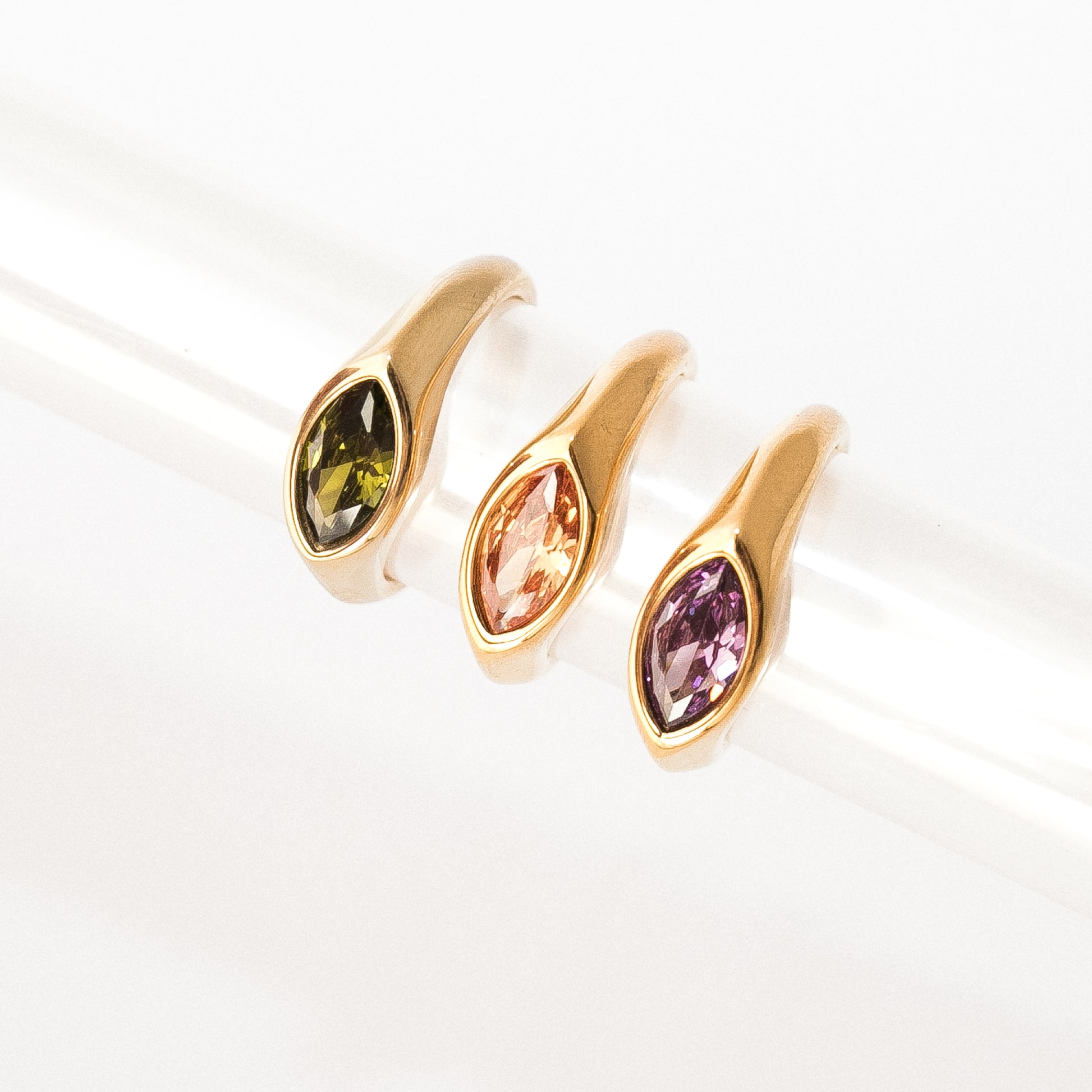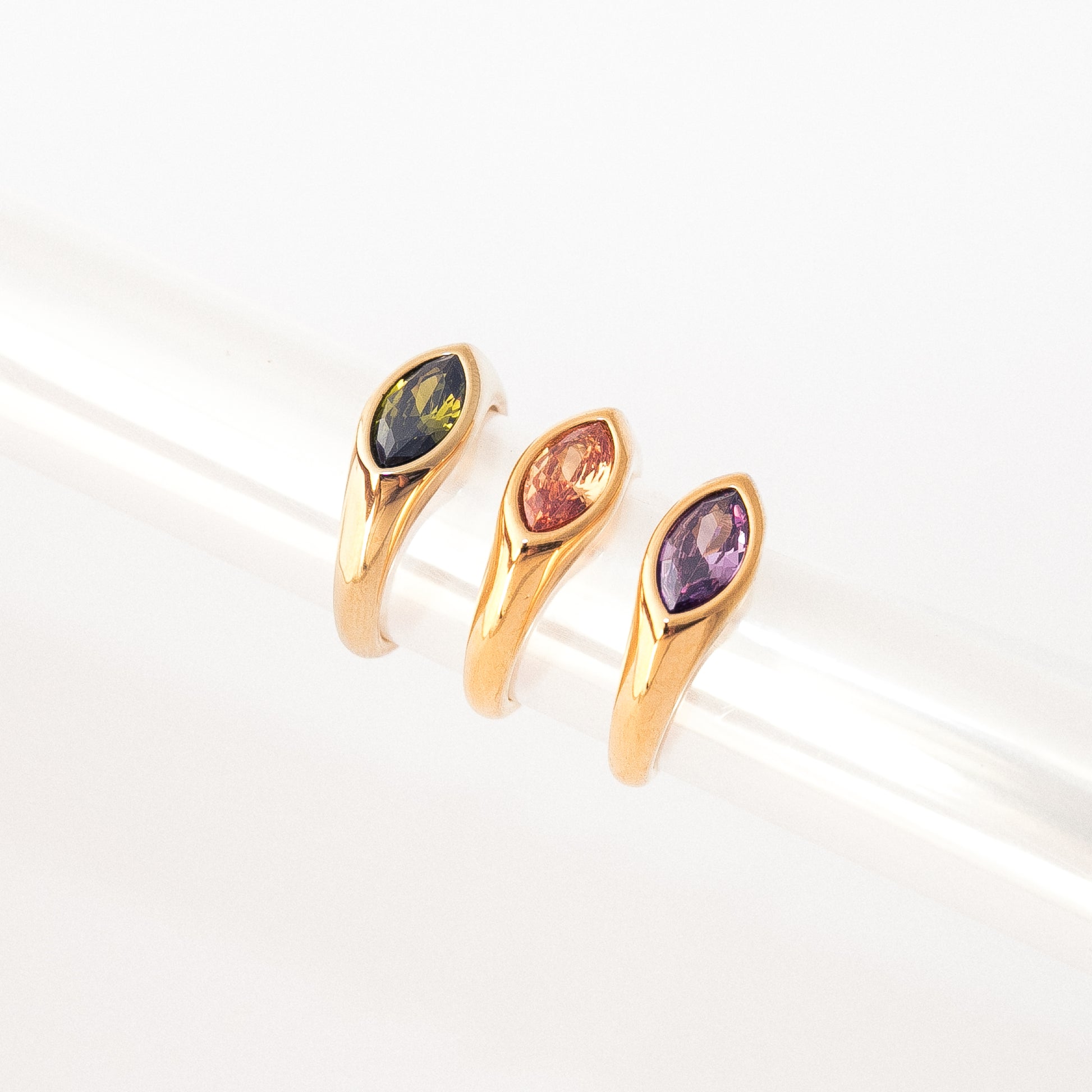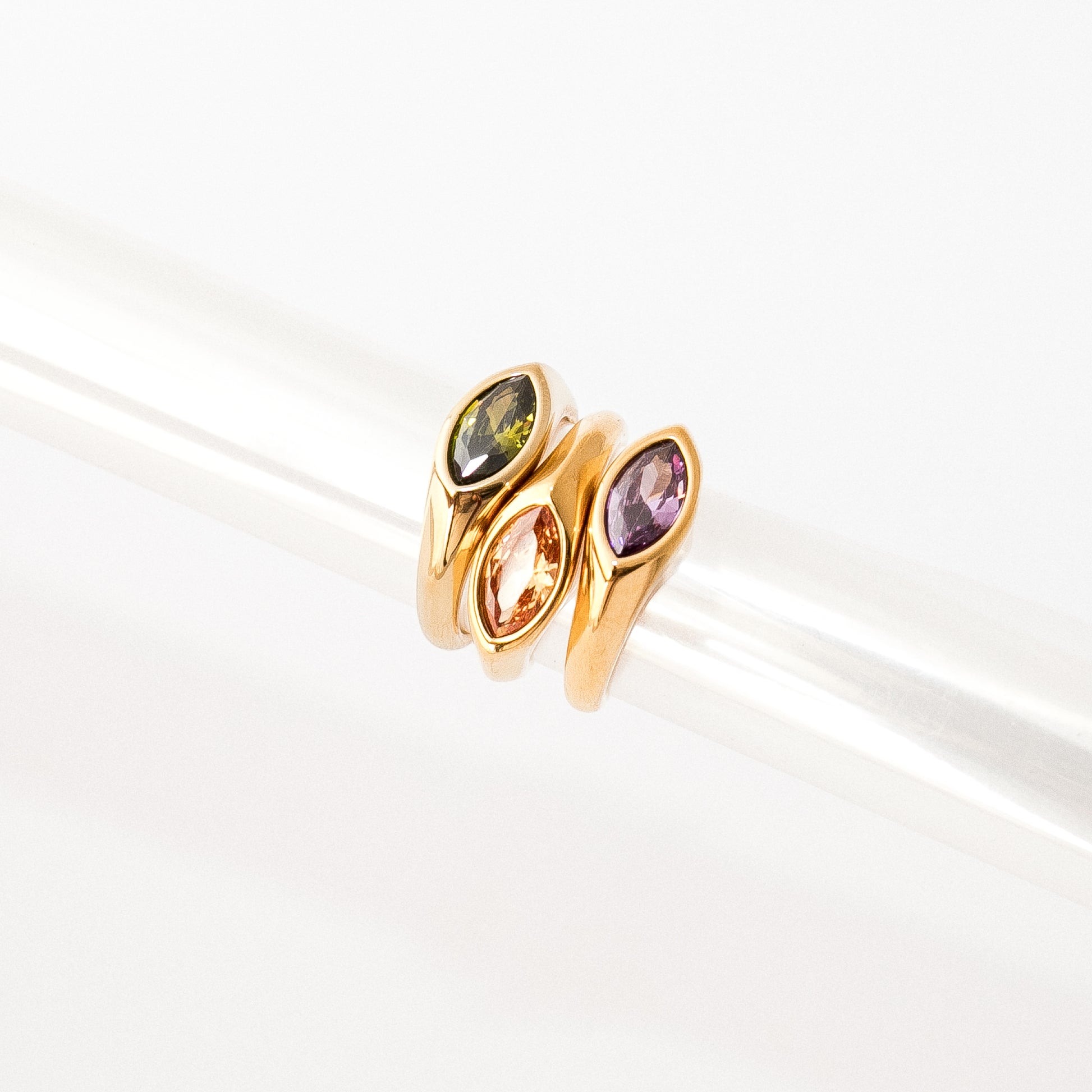 Introducing the Juicy Gem Ring by Jimnojean. This playful, bold ring features a beautiful juicy glass looking cubic zirconia stone - throwing your eyes front and centre. Perfect for stacking - these rings do not need to leave your finger because they're Waterproof baby!
