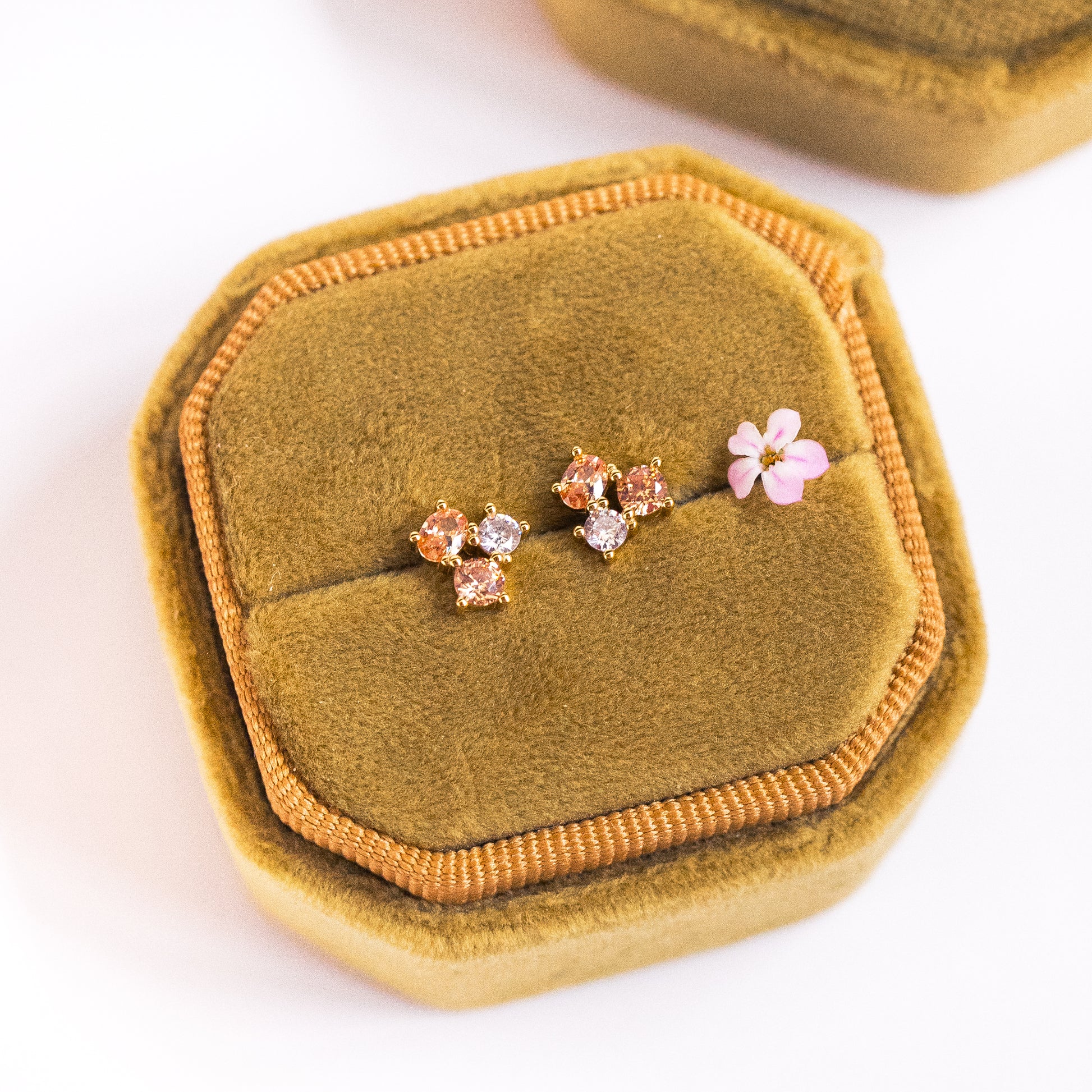 Our Peaches & Cream Studs are paired here with our Bingo Hoops.