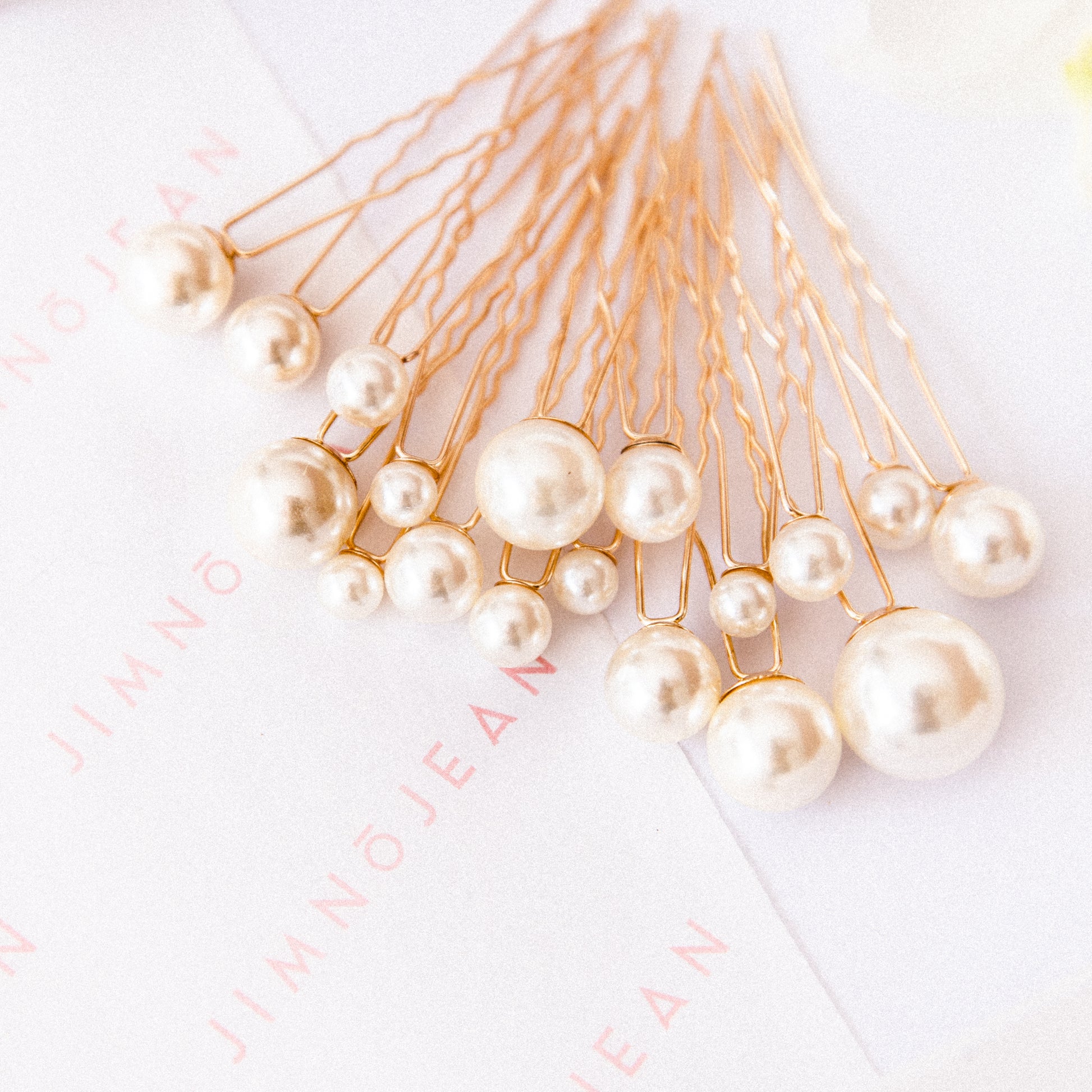 Perfect for your bridal look - get creative with this set of 18 pearl pins in a variety sizes.