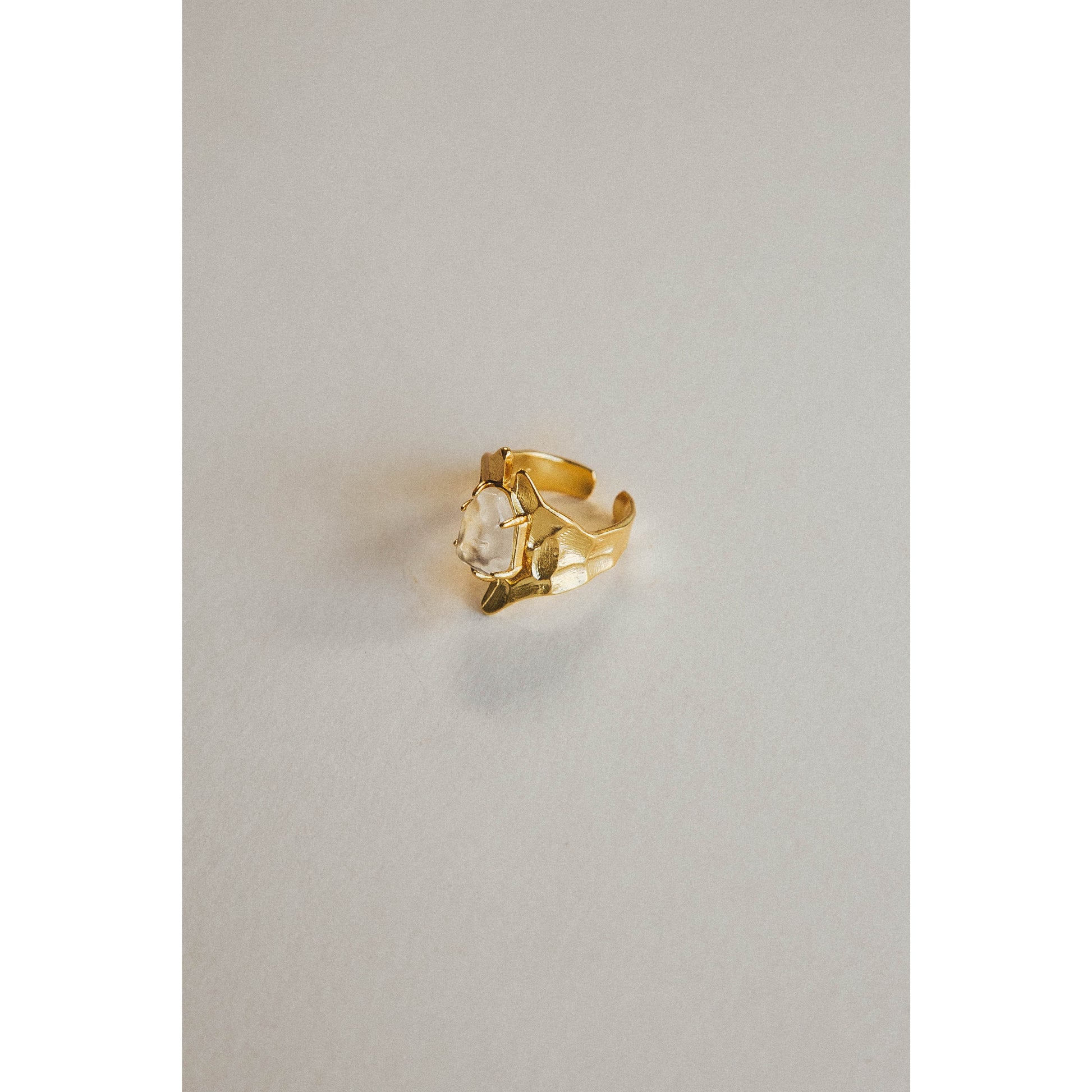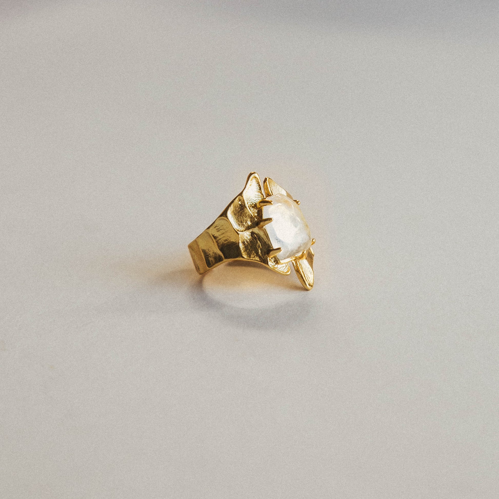 Our Predator Ring is one size fits all with an open adjustable band & been created from 925 Sterling Silver, is 14kt Gold-Plated, and has been adorned with a white crystal, by Jimnojean