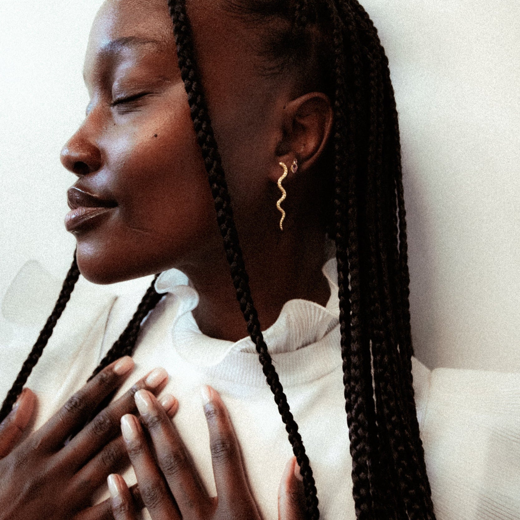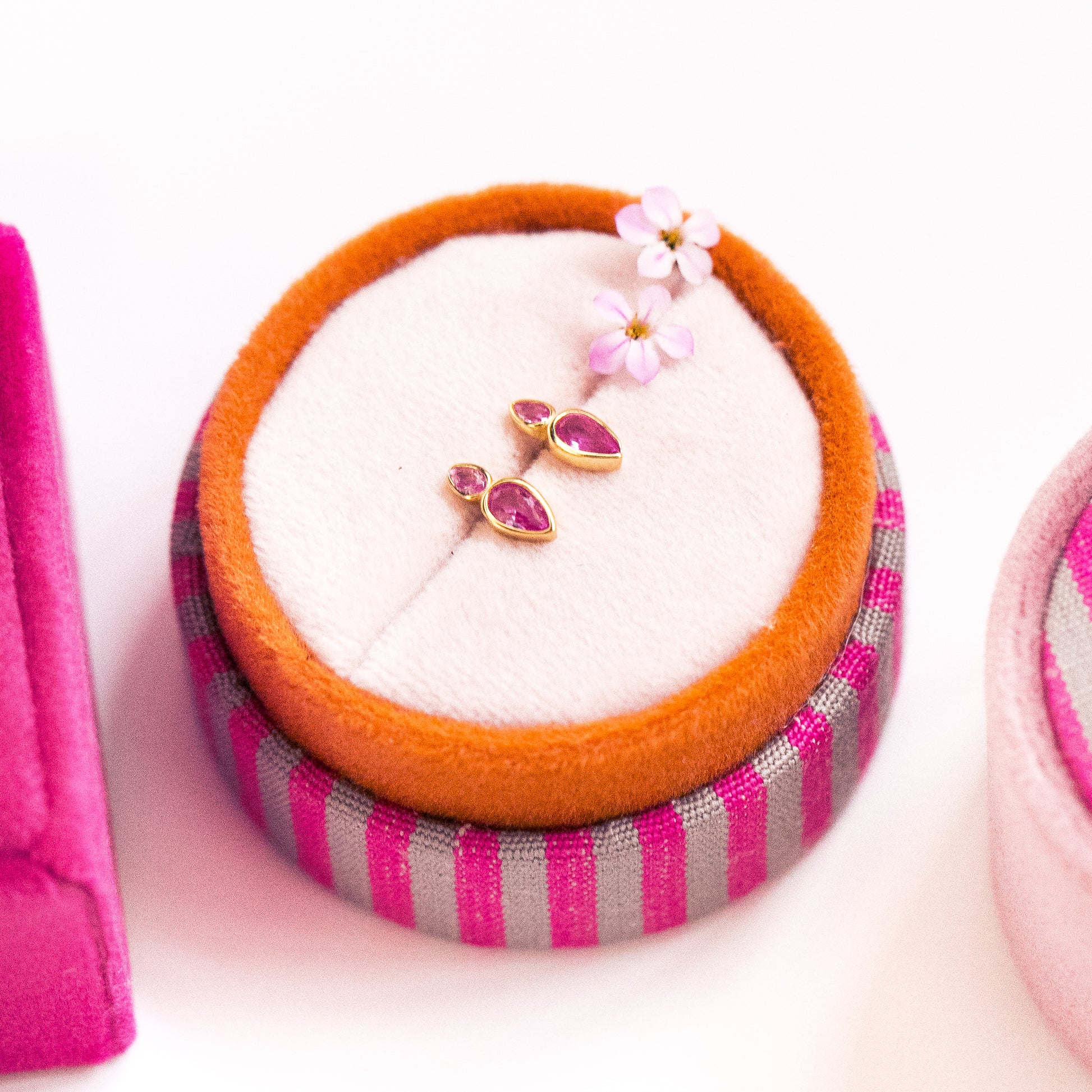 We've paired the Ray Studs here with the Bitis Drops and the Baby Studs in Pink.