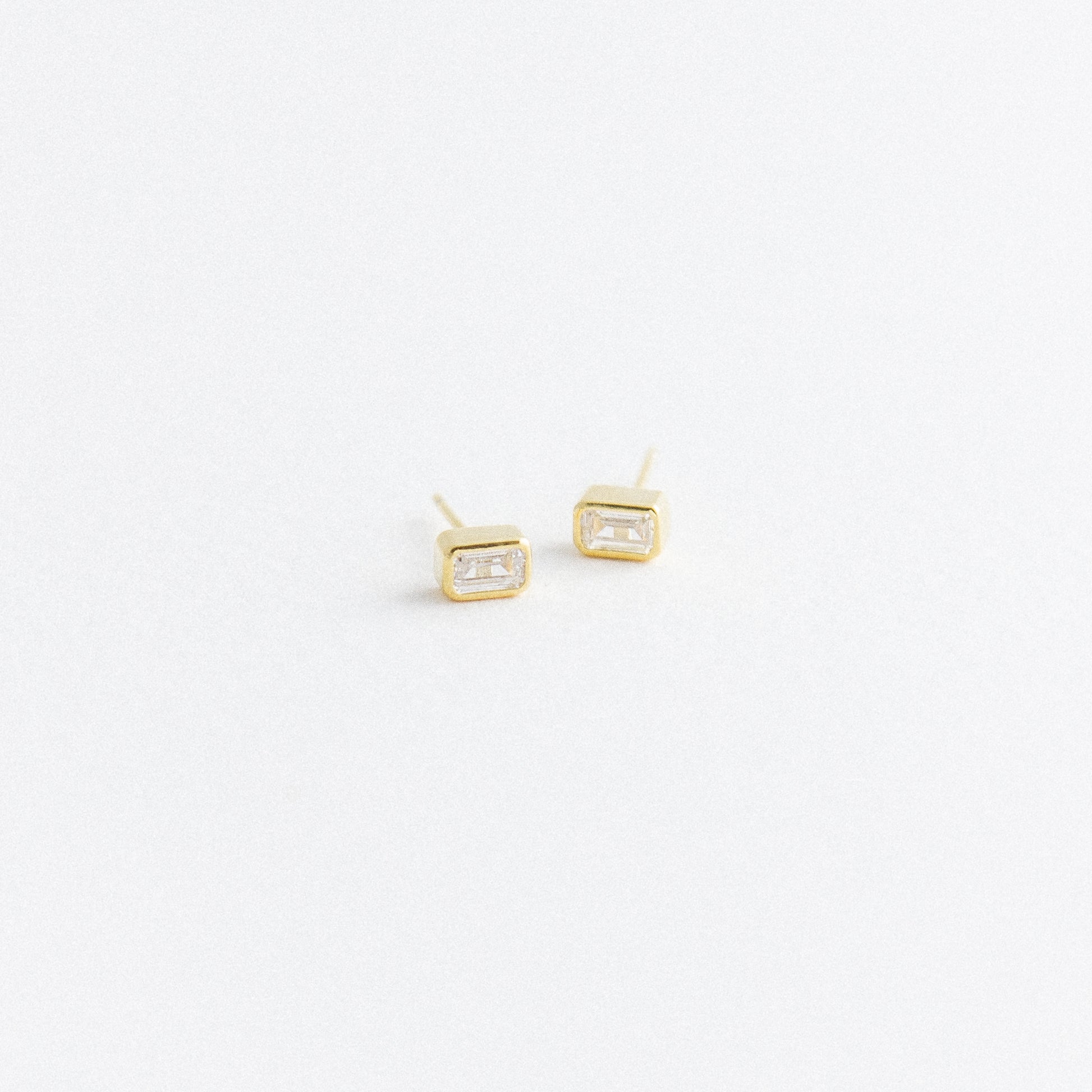 Crafted from 925 sterling silver and finished with 14kt gold plating, these beauties feature a radiant bezel-set stone that catches the light just right.