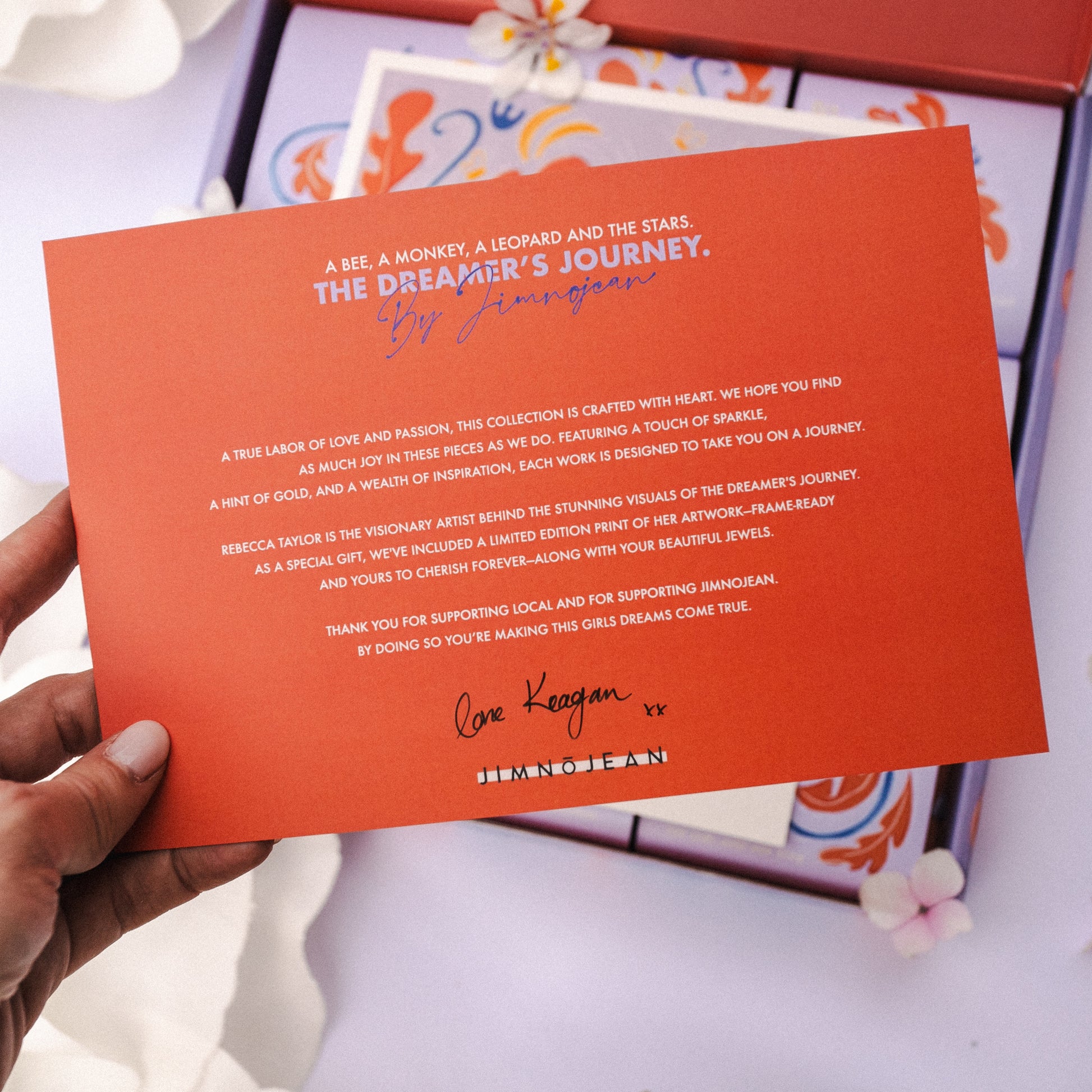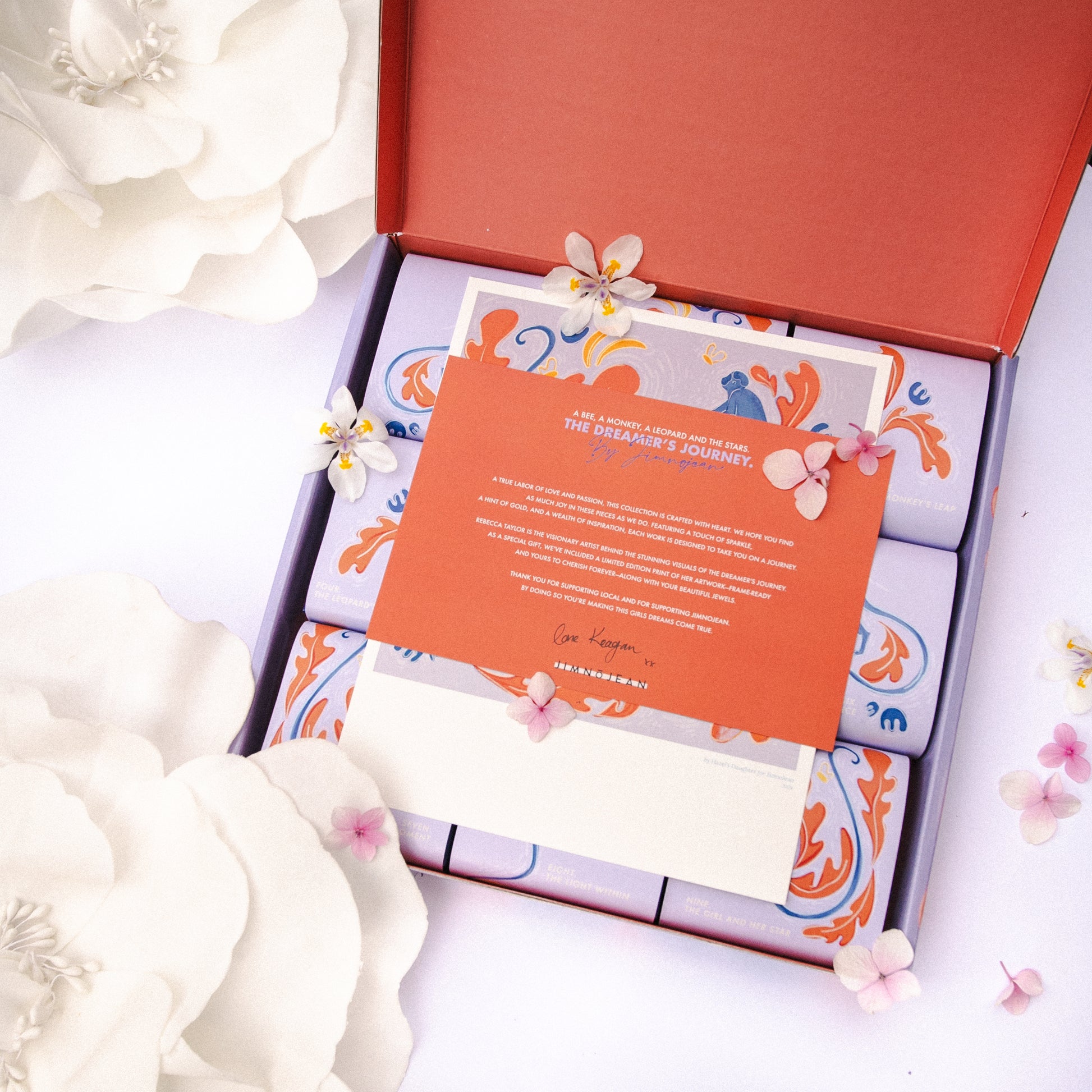 Due to popular demand our first run of the Dreamer’s Journey Gift Boxes have sold out. We have restocked with a limited run of 20 boxes that will be ready to by the 18th of December - just in time for Christmas! Once purchased, we will be in touch with your order timeline and shipping dates.
