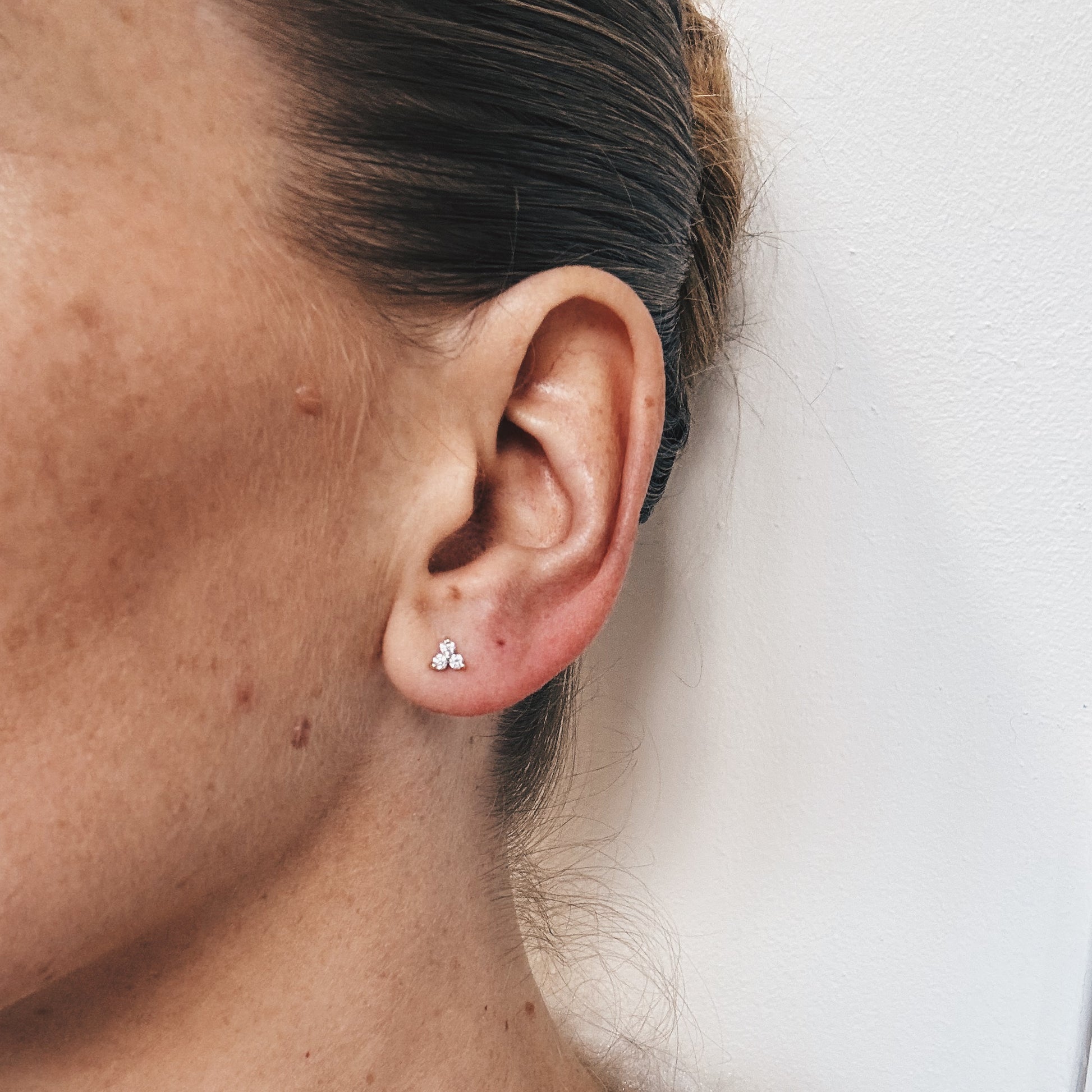 Made from solid 9ct gold and set with three sparkling 2mm lab-grown diamonds, this teeny-tiny beauty is proof that good things really do come in threes.