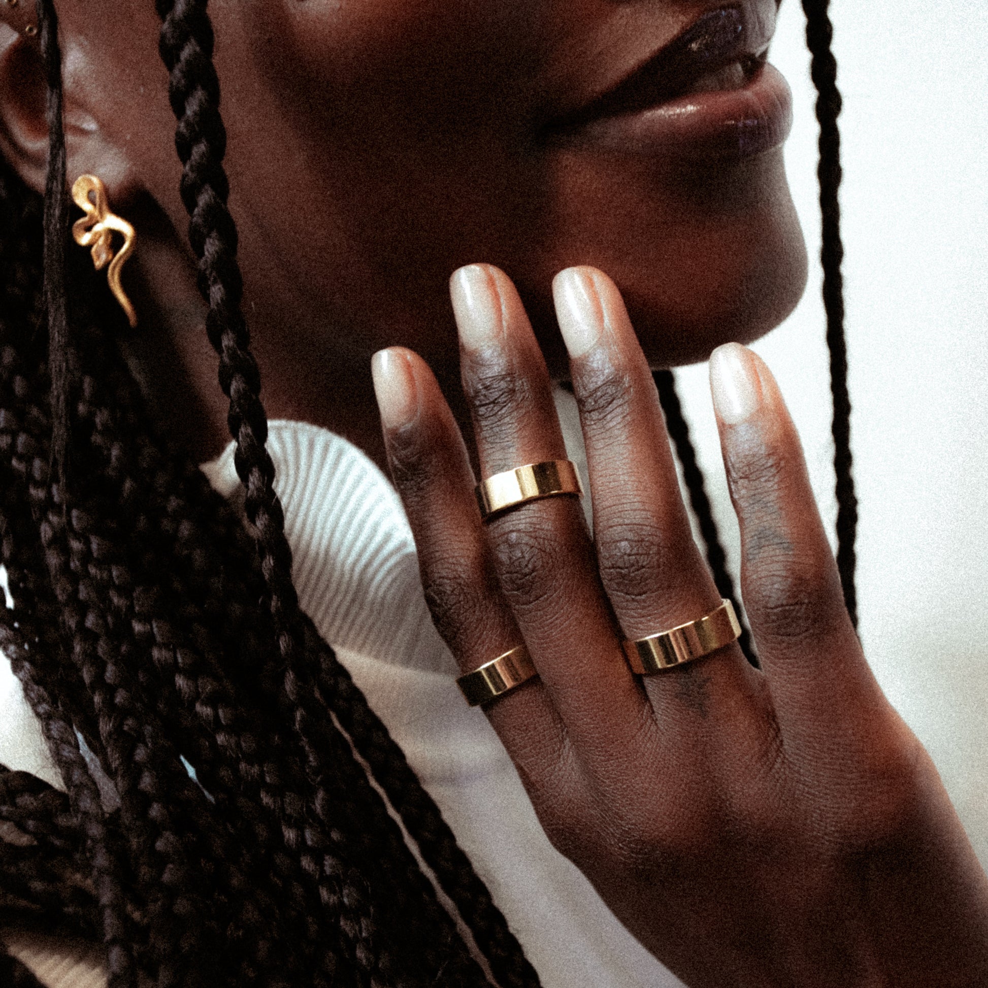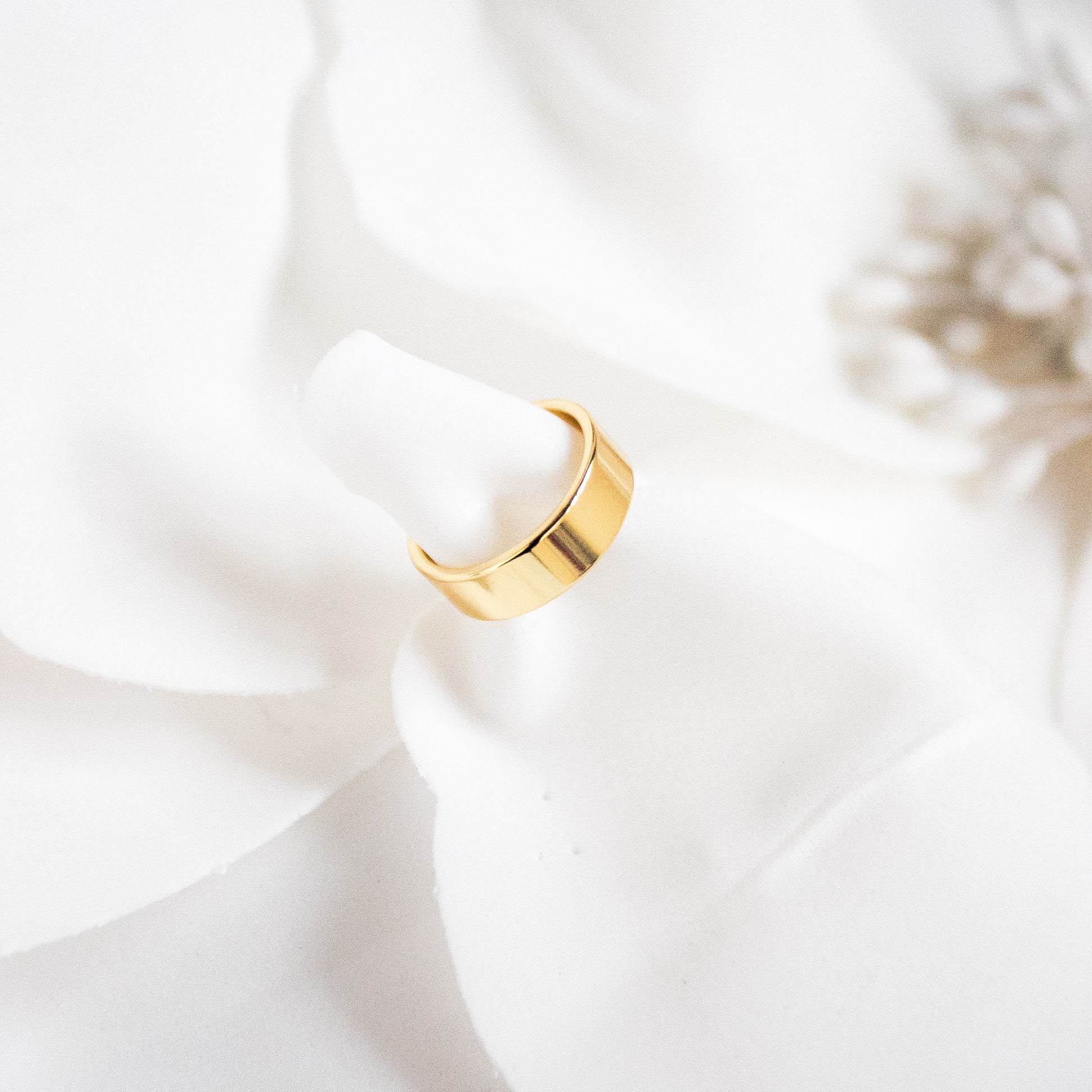 A bold 6mm cigar band with timeless energy and just the right amount of attitude. Wears beautifully on her own or stacked with your sparkle sisters. Minimal, but never boring.