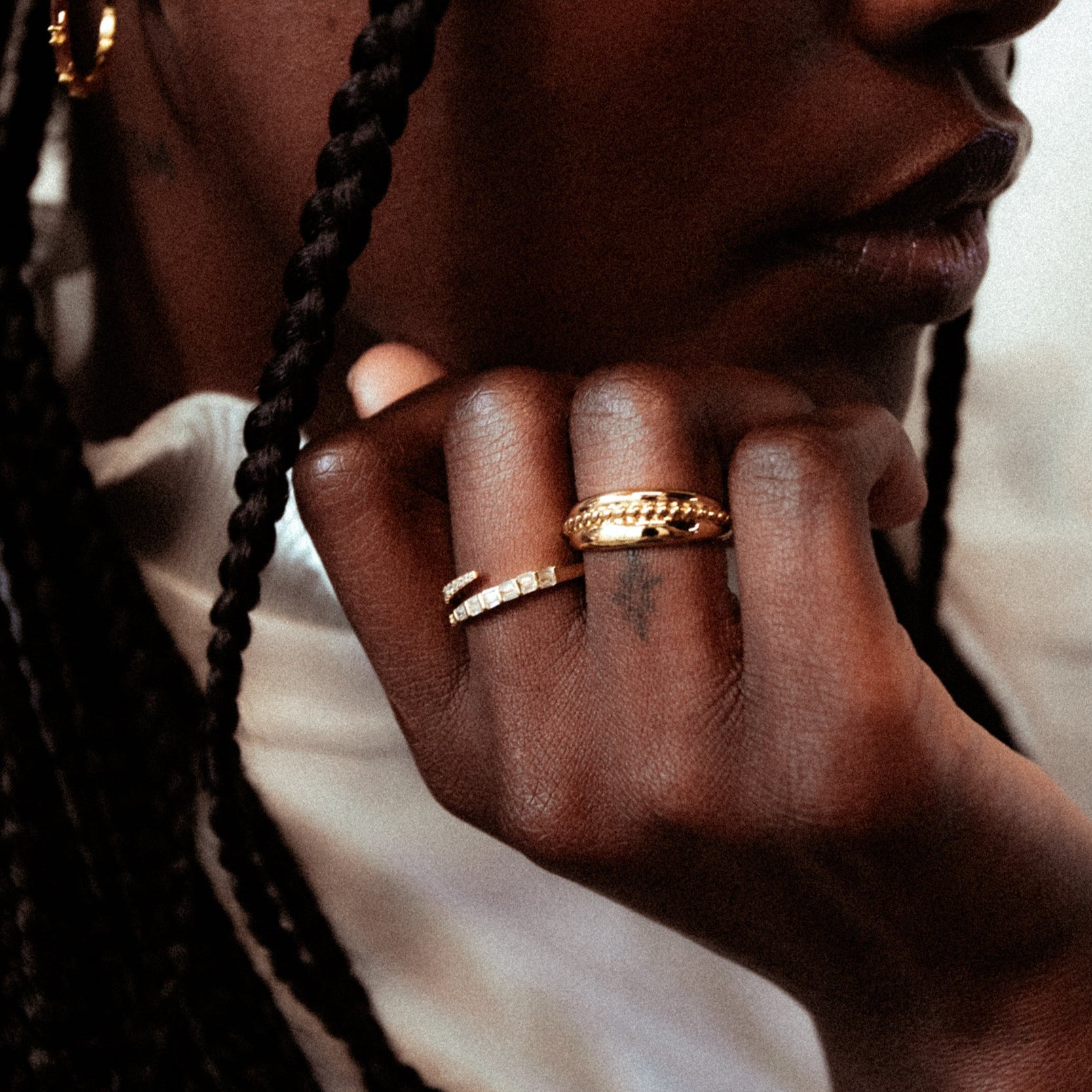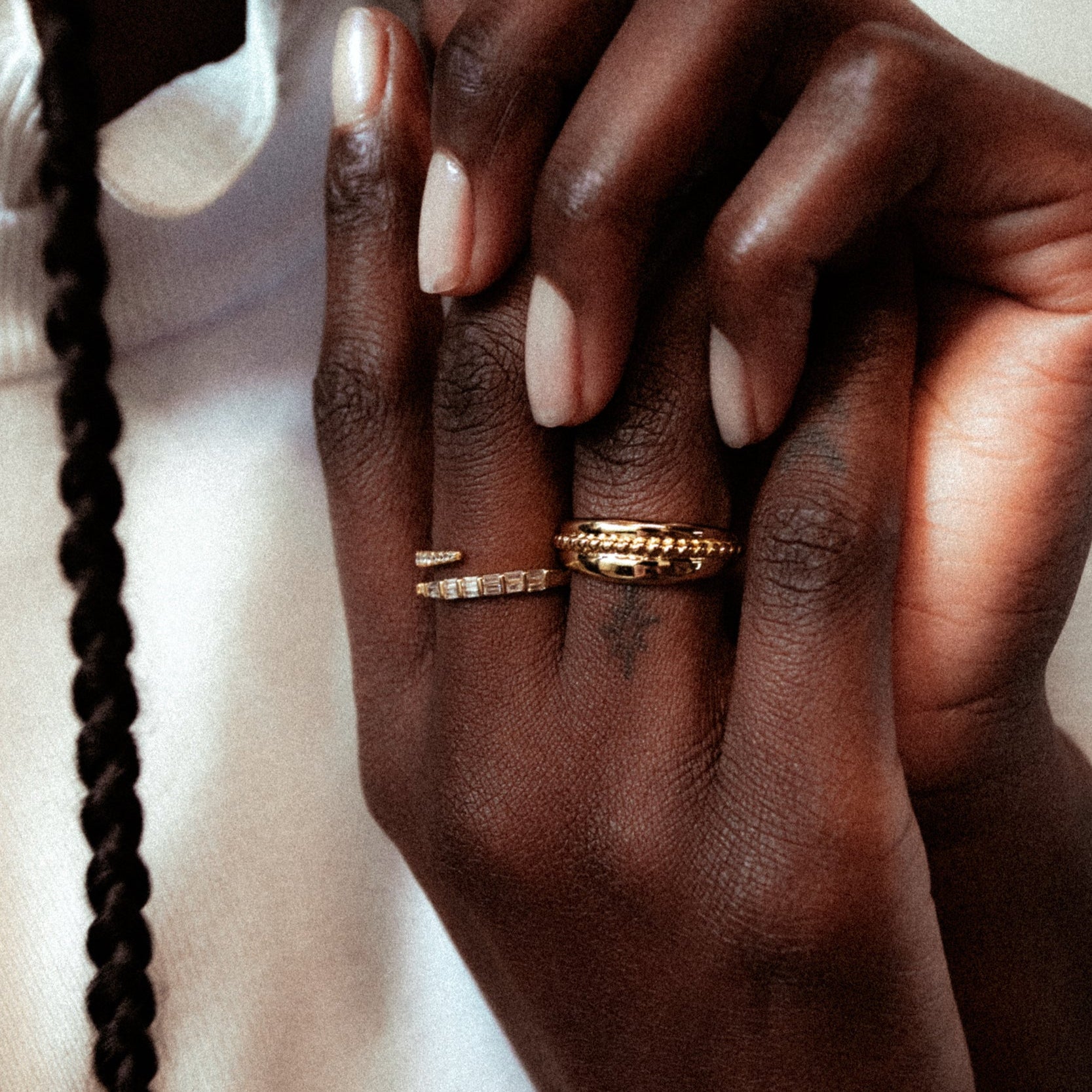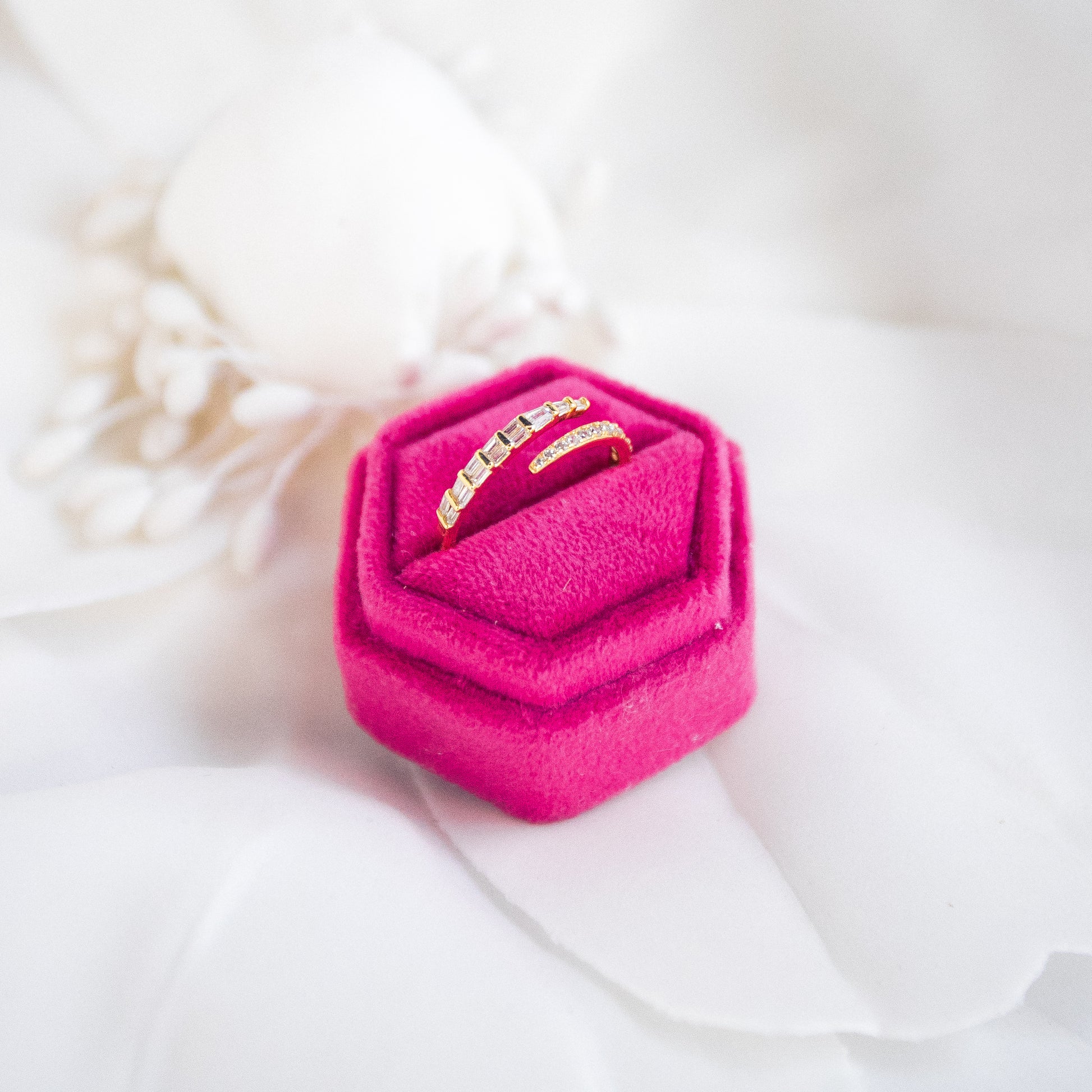 It’s sparkly, glitzy, and just the right amount of understated. A subtle show-off. The kind of ring that makes your everyday outfit feel a little more main character.